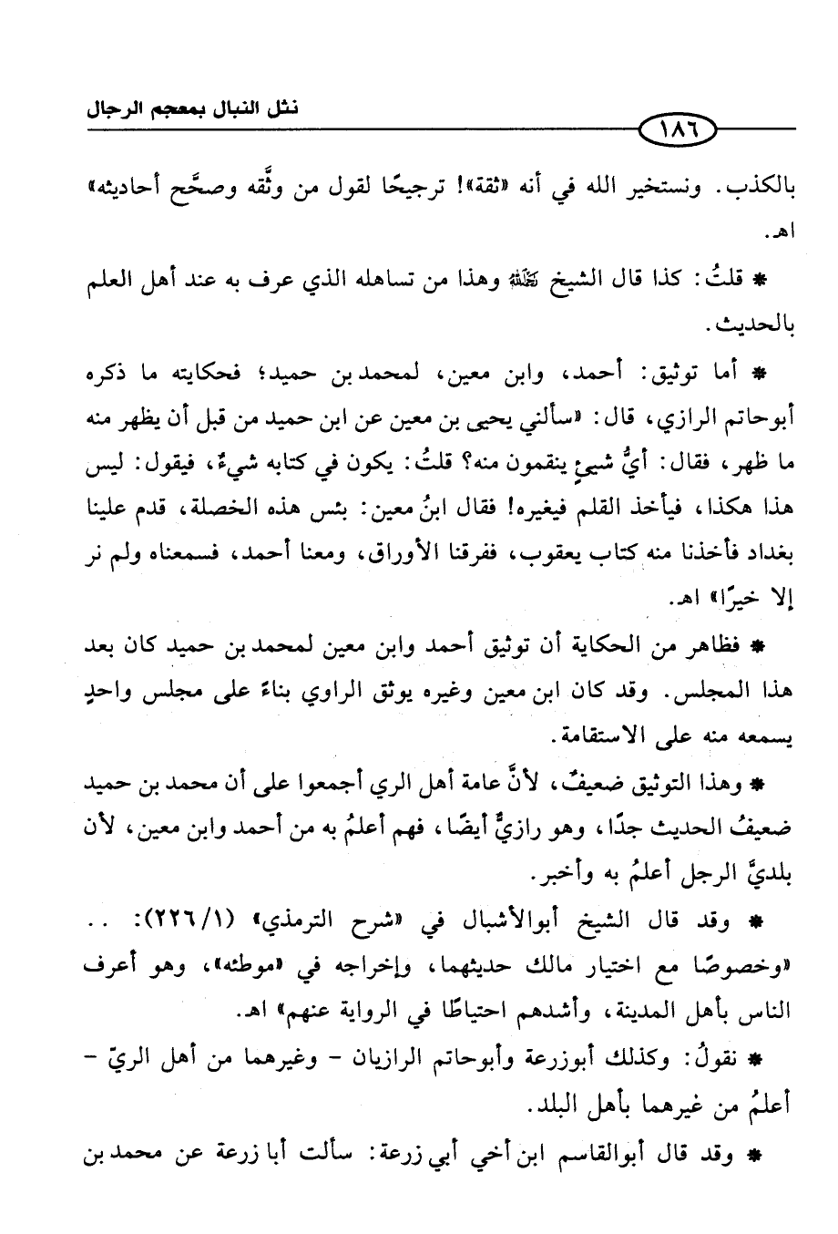 * فظاهر من الحكاية أن توثيق أحمد وابن معين لمحمد بن حميد كان بعد هذا المجلس. وقد كان ابن معين وغيره يوثق الراوي بناءً على مجلس واحدٍ يسمعه منه على الاستقامة.