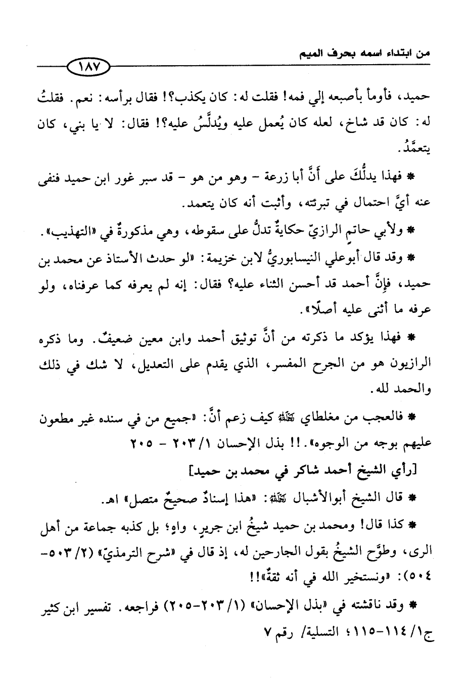 [رأي الشيخ أحمد شاكر في محمَّد بن حميد]