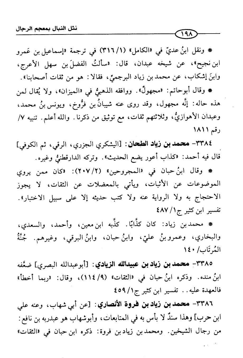 3385 - محمد بن زياد بن عبيد الله الزيادي: [أبو عبد الله البصري] ضعَّفه ابنُ منده. وذكره ابنُ حبان في "الثقات" (9/ 114)، وقال: "ربما أخطأ" فالعهدة عليه. . تفسير ابن كثير ج 1/ 459