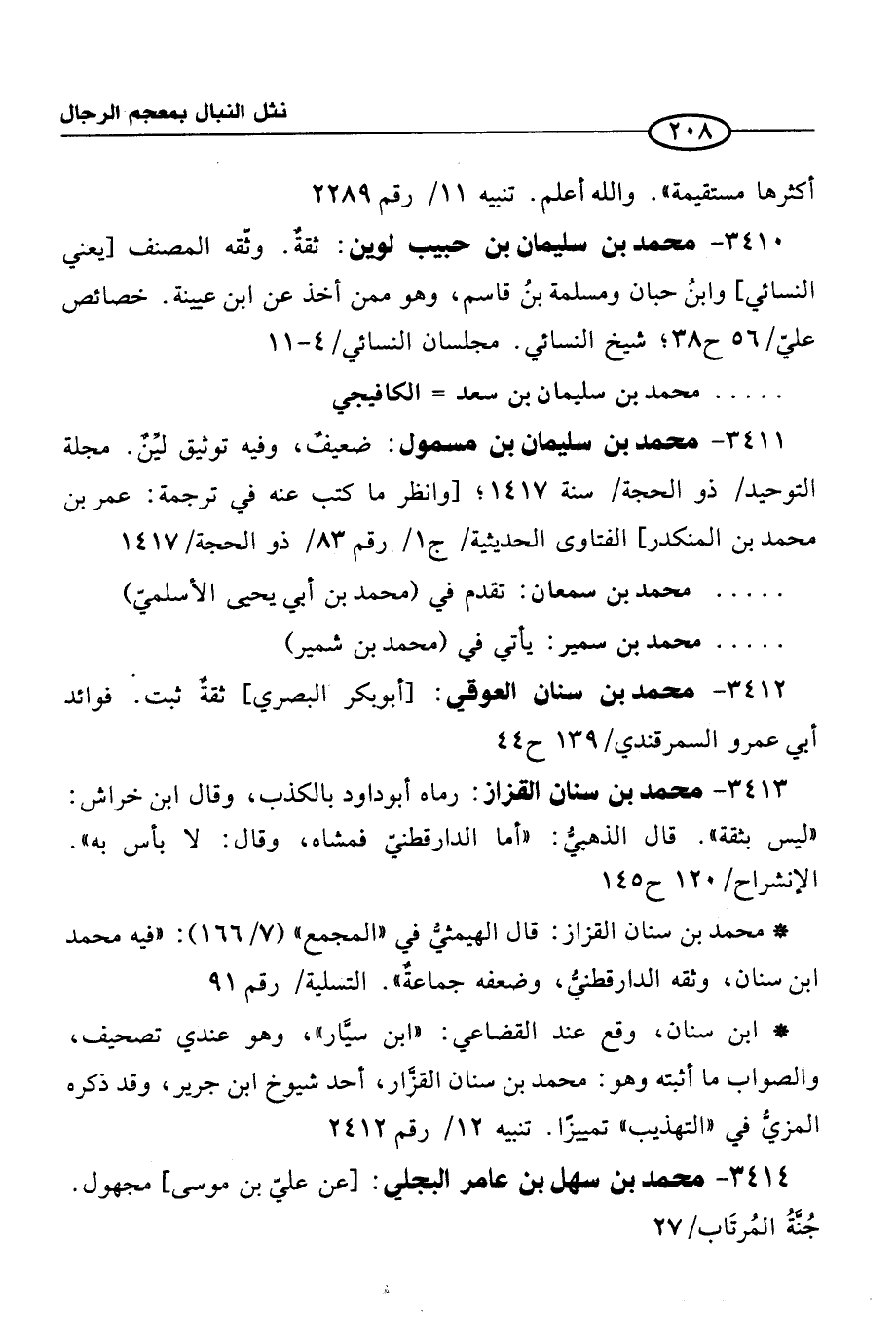 3410 - محمد بن سليمان بن حبيب لوين: ثقةٌ. وثّقه المصنف [يعني النسائي] وابنُ حبان ومسلمة بنُ قاسم، وهو ممن أخذ عن ابن عيينة. خصائص عليّ / 56 ح 38؛ شيخ النسائي. مجلسان النسائي / 4 - 11