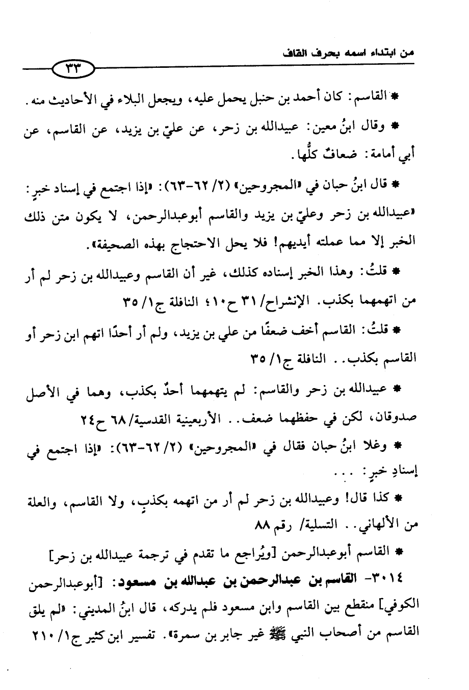 * قلتُ: القاسم أخف ضعفًا من علي بن يزيد، ولم أر أحدًا اتهم ابن زحر أو القاسم بكذب. . النافلة ج1/ 35