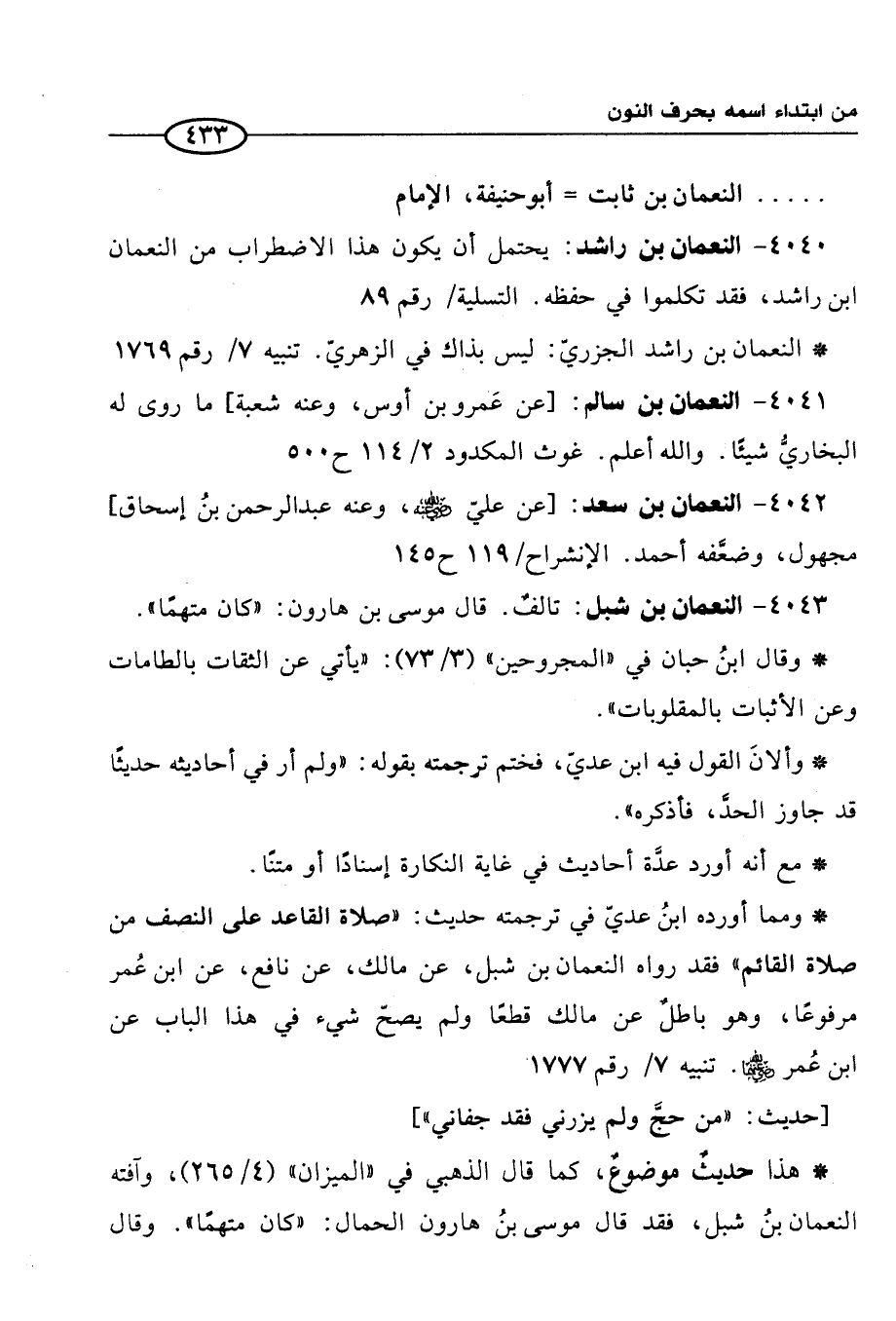 4043 - النعمان بن شبل: تالفٌ. قال موسى بن هارون: "كان متهمًا".