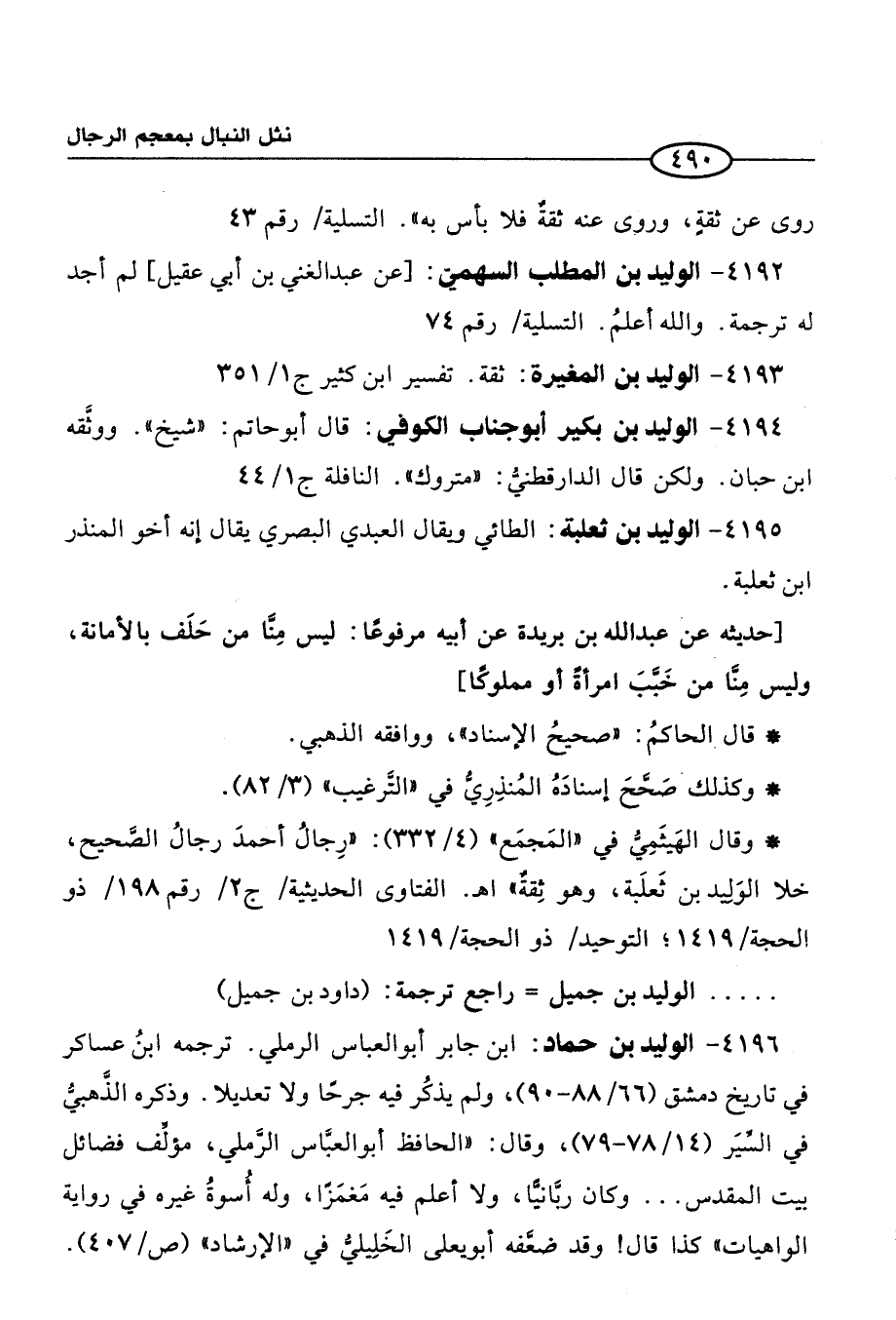 4193 - الوليد بن المغيرة: ثقة. تفسير ابن كثير ج 1/ 351