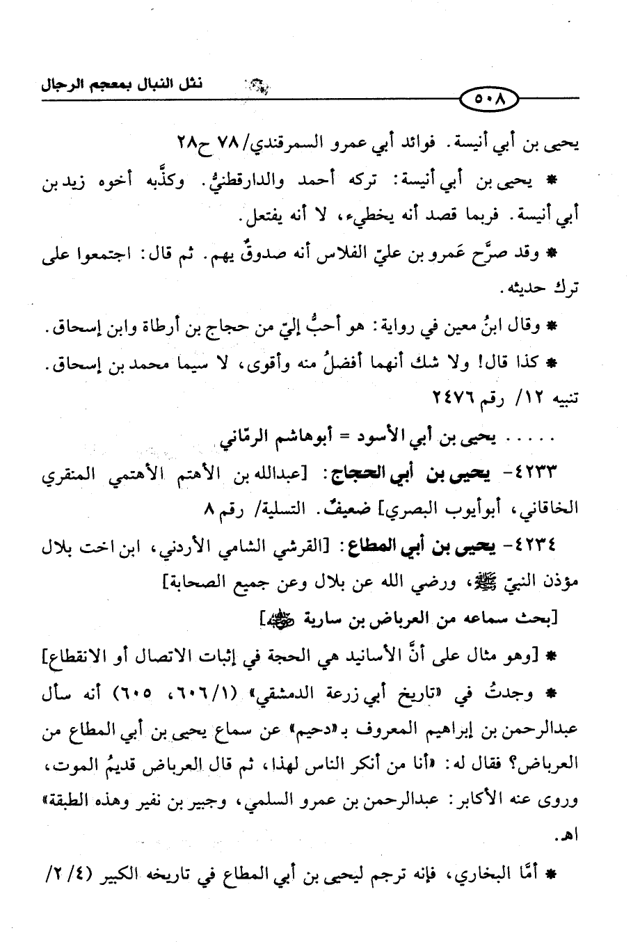 4233 - يحيى بن أبي الحجاج: [عبد الله بن الأهتم الأهتمي المنقري الخاقاني، أبو أيوب البصري] ضعيفٌ. التسلية / رقم 8