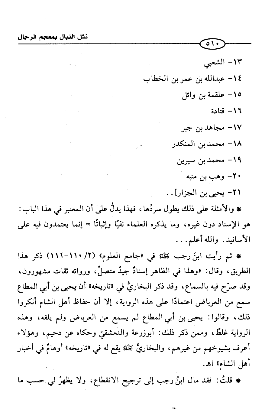 * والأمثلة على ذلك يطول سردُها، فهذا يدلُّ على أن المعتبر في هذا الباب: هو الإسناد دون غيره، وما يذكره العلماء نفيًا وإثباتًا = إنما يعتمدون فيه على الأسانيد. والله أعلم. . .