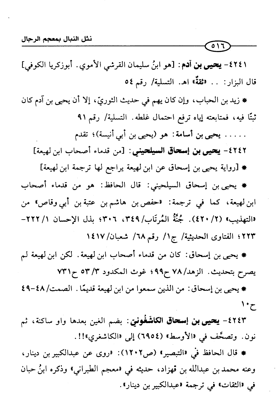 4241 - يحيى بن آدم: [هو ابنُ سليمان القرشي الأموي. أبو زكريا الكوفي] قال البزار:. . "ثقةٌ" اهـ. التسلية / رقم 54