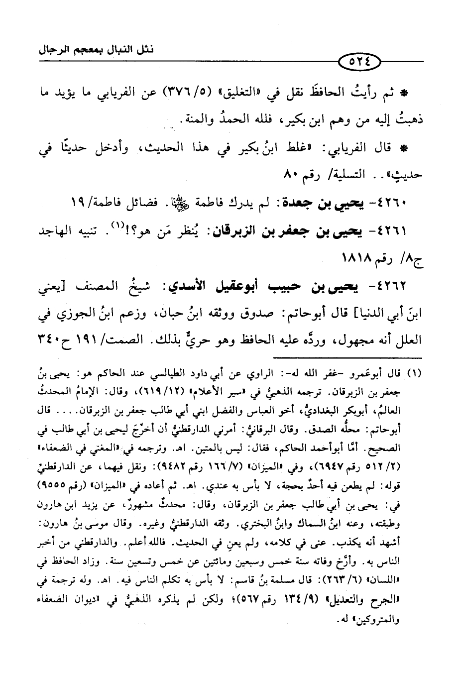 4261 - يحيى بن جعفر بن الزبرقان: يُنظر مَن هو؟! (1). تنبيه الهاجد ج 8/ رقم 1818