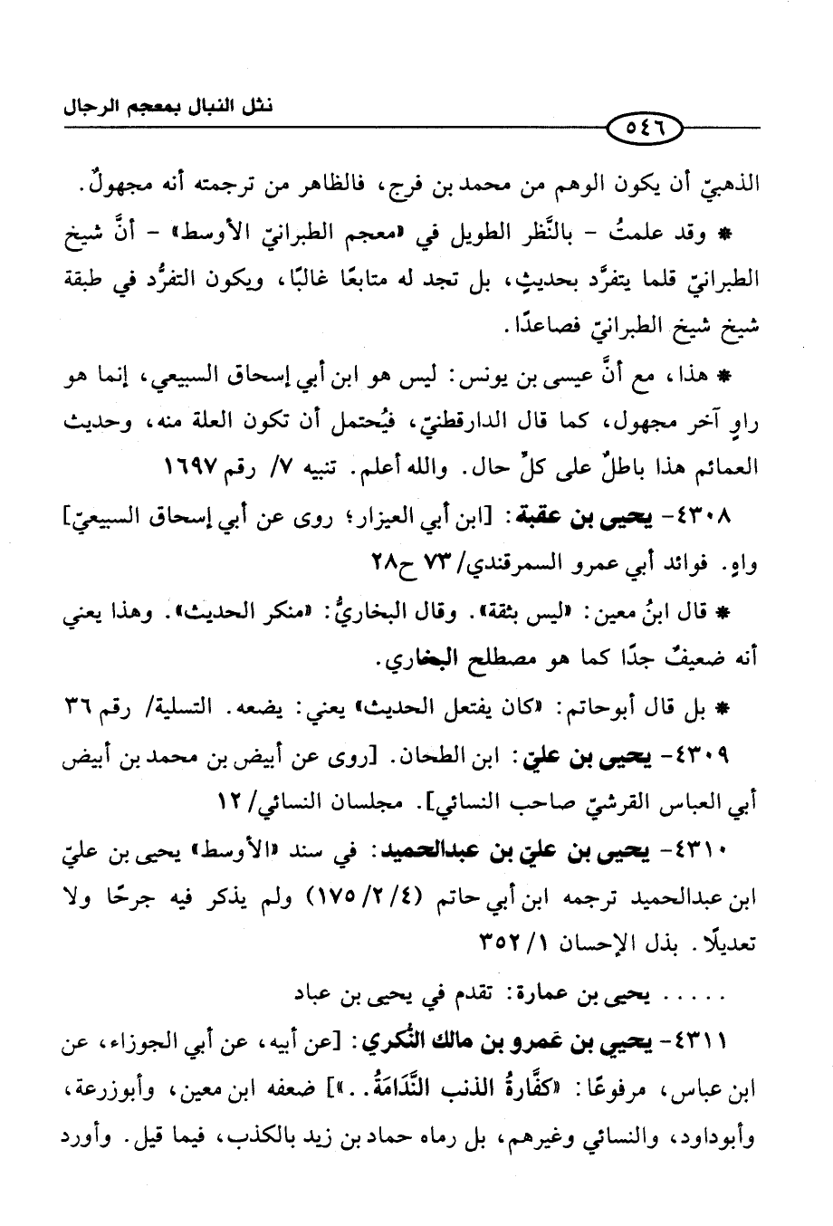 4310 - يحيى بن عليّ بن عبد الحميد: في سند "الأوسط" يحيى بن عليّ ابن عبد الحميد ترجمه ابن أبي حاتم (4/ 2/ 175) ولم يذكر فيه جرحًا ولا تعديلًا. بذل الإحسان 1/ 352
