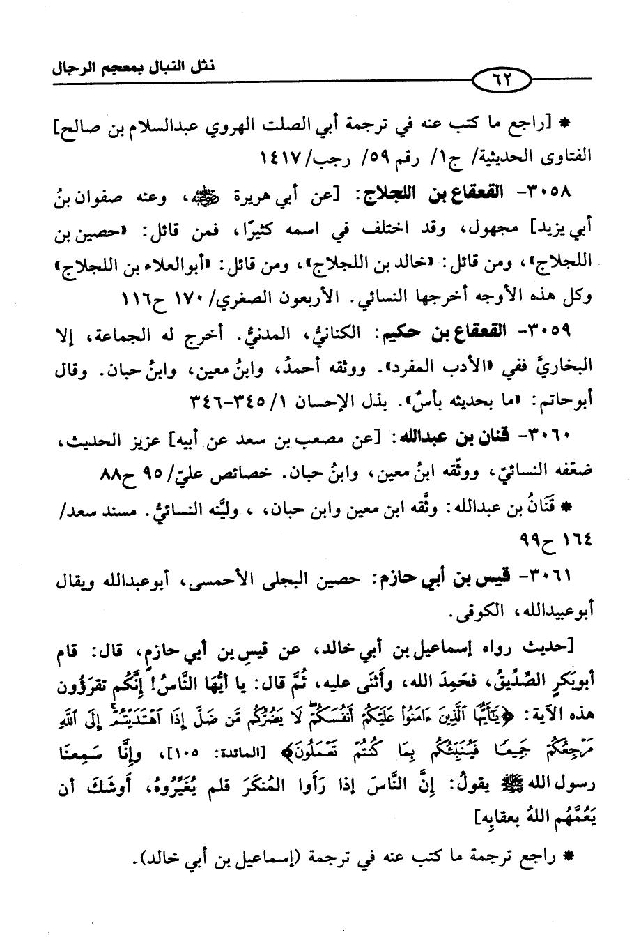 3061 - قيس بن أبي حازم: حصين البجلي الأحمسى, أبو عبد الله ويقال أبو عبيد الله, الكوفي.