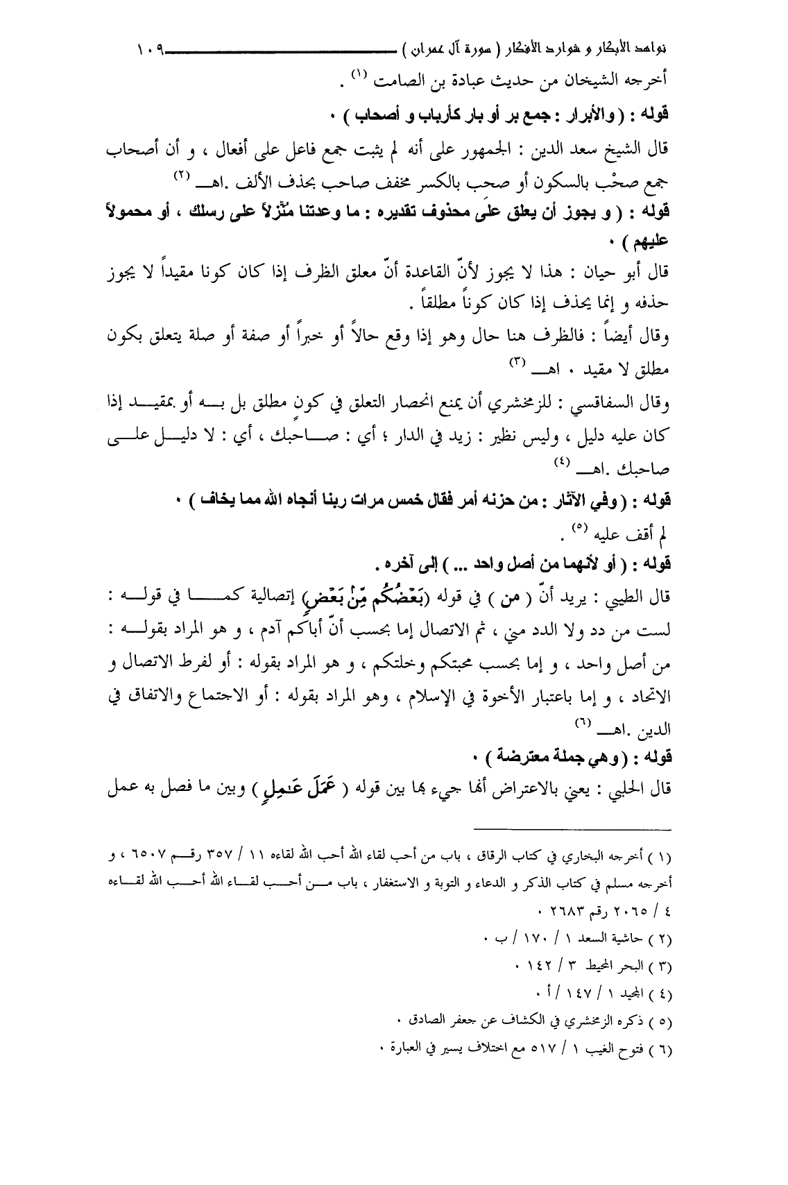 قوله: (والأبرار: جمع برّ أو بارّ كأرباب وأصحاب).