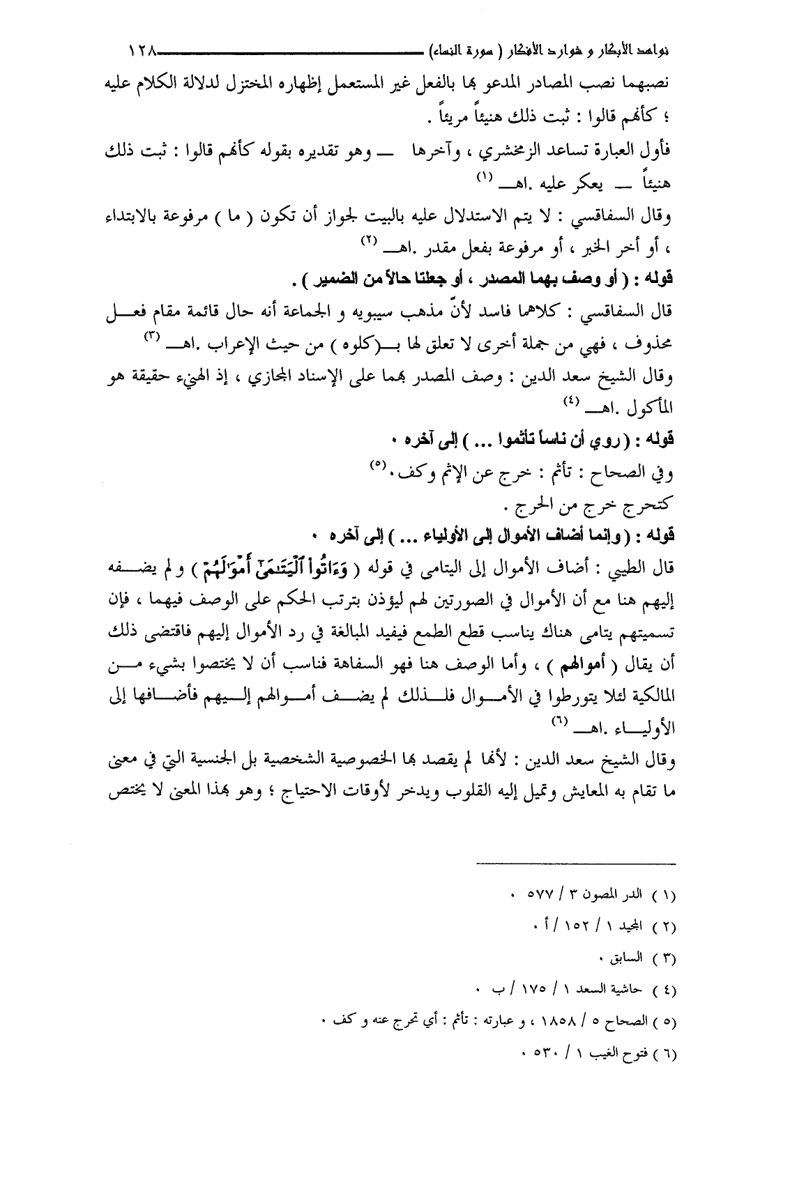 كتاب نواهد الأبكار وشوارد الأفكار = حاشية السيوطي على تفسير البيضاوي (اسم الجزء: 3)