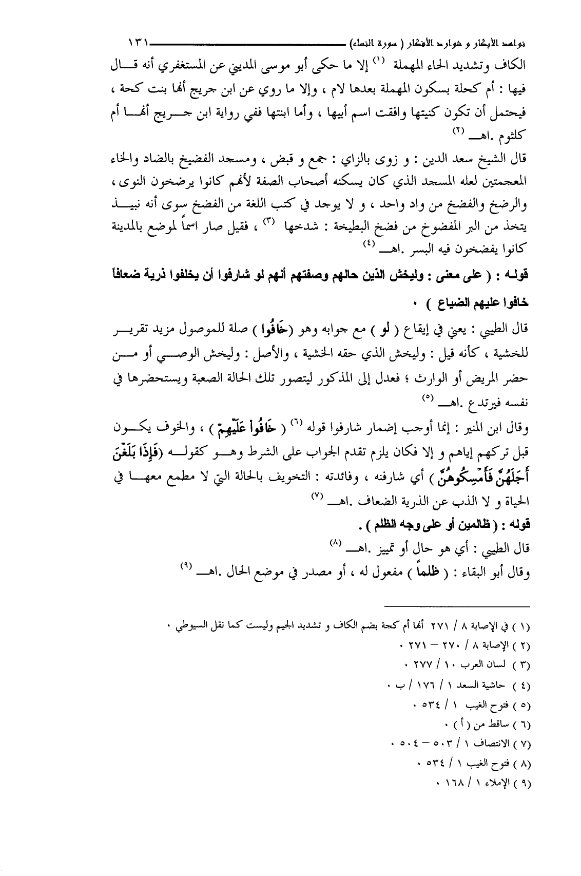 كتاب نواهد الأبكار وشوارد الأفكار = حاشية السيوطي على تفسير البيضاوي (اسم الجزء: 3)