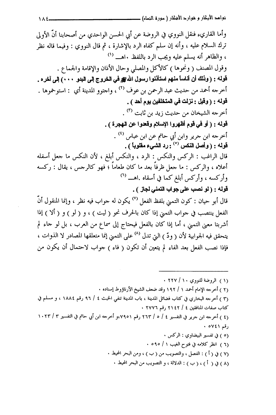 قوله: (وقيل: نزلت فى المتخلفين يوم أُحد).