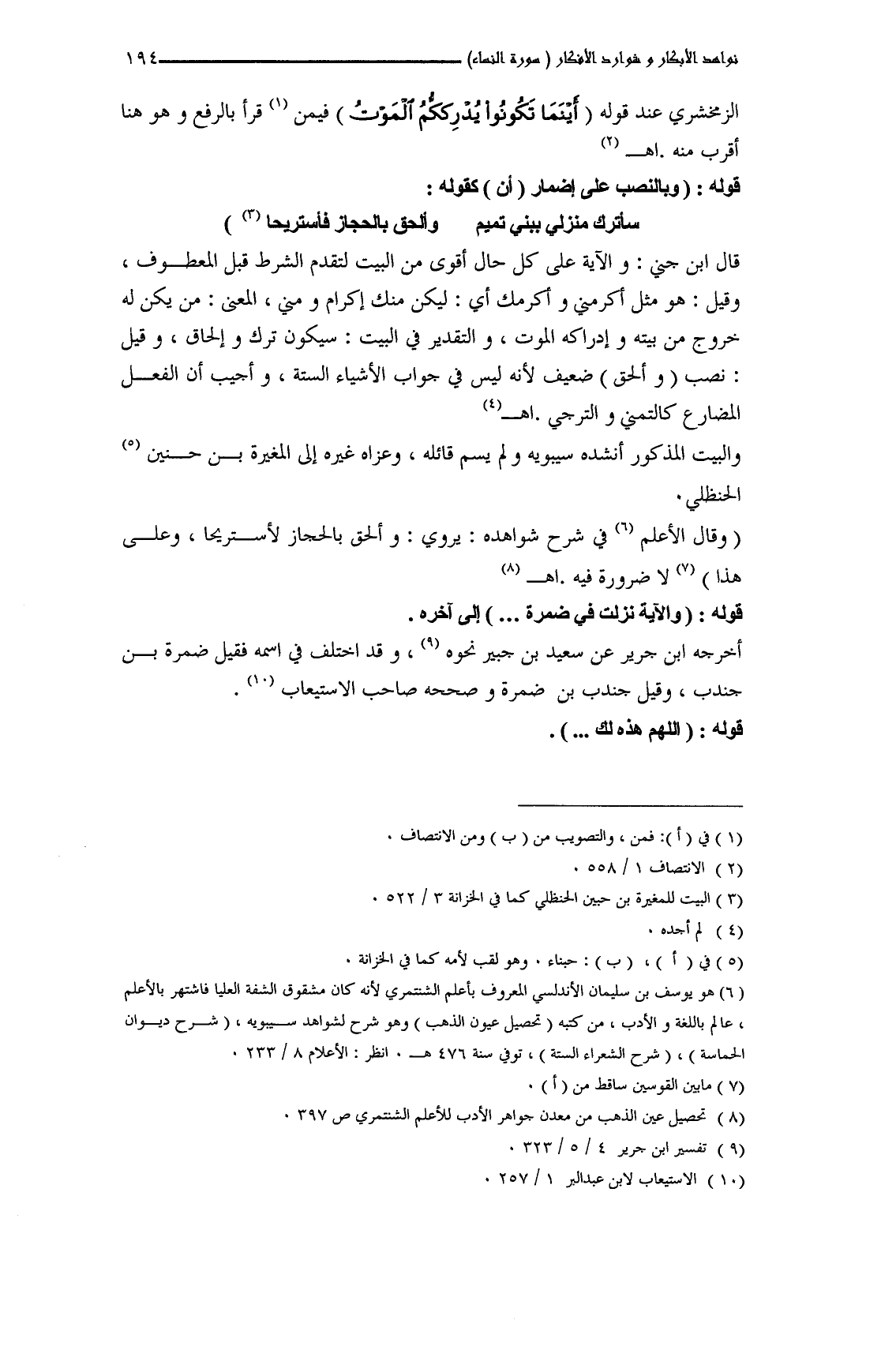 الزمخشري عند قوله (أَيْنَمَا تَكُونُوا يُدْرِكْكُمُ الْمَوْتُ) فيمن قرأ بالرفع وهو هنا أقرب منه. اهـ