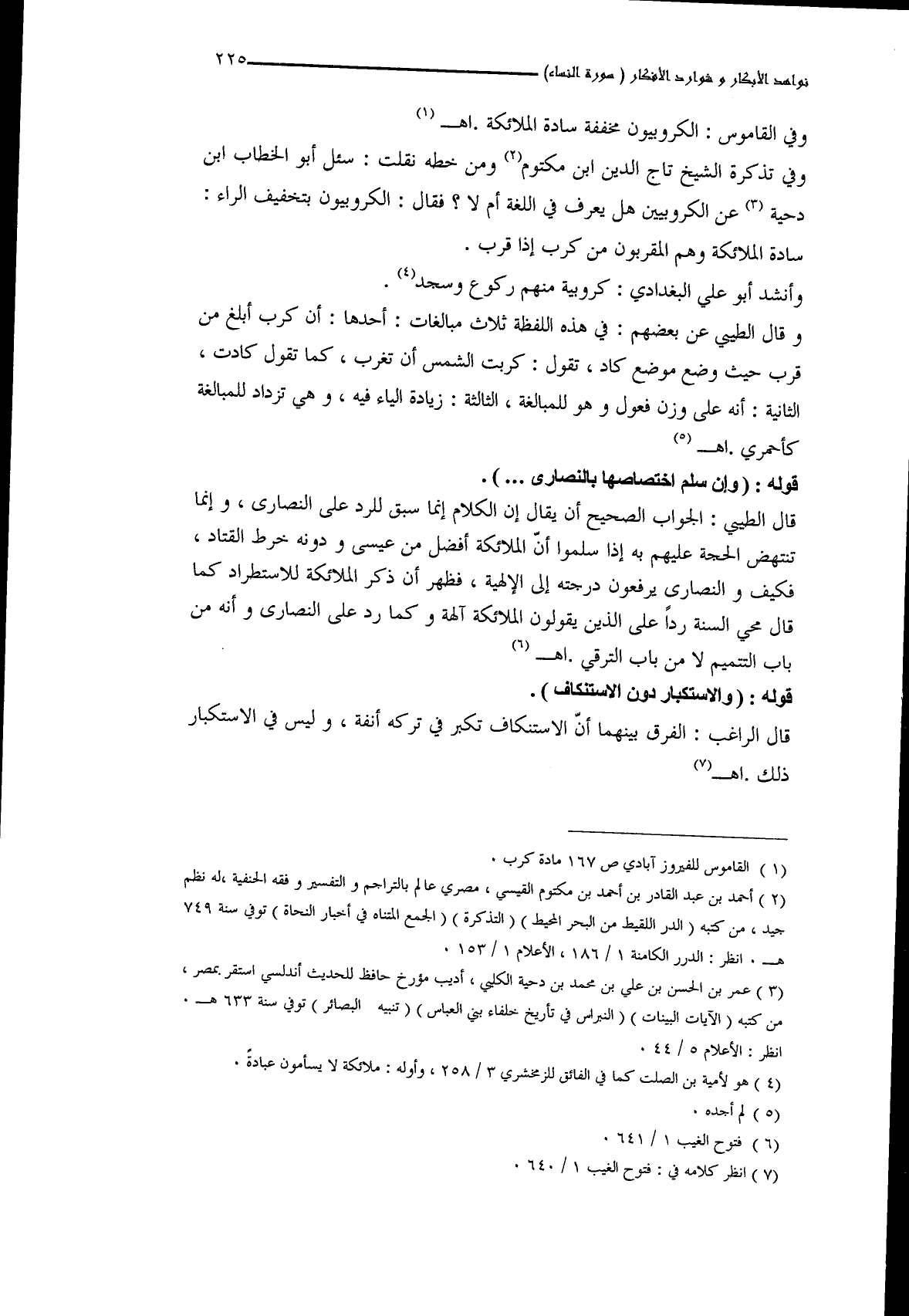 قال الطَّيبي: الجواب الصحيح أن يقال إن الكلام إنما سبق للرد على النصارى، وإنما تنتهض الحجة عليهم به إذا سلموا أنَّ الملائكة أفضل من عيسى ودونه خرط القتاد، فكيف والنصارى يرفعون درجته إلى الإلهية، فظهر أن ذكر الملائكة للاستطراد كما قال محي السنة رداً على الذين يقولون الملائكة آلهة وكما رد على النصارى وأنه من باب التتميم لا من باب الترقي. اهـ