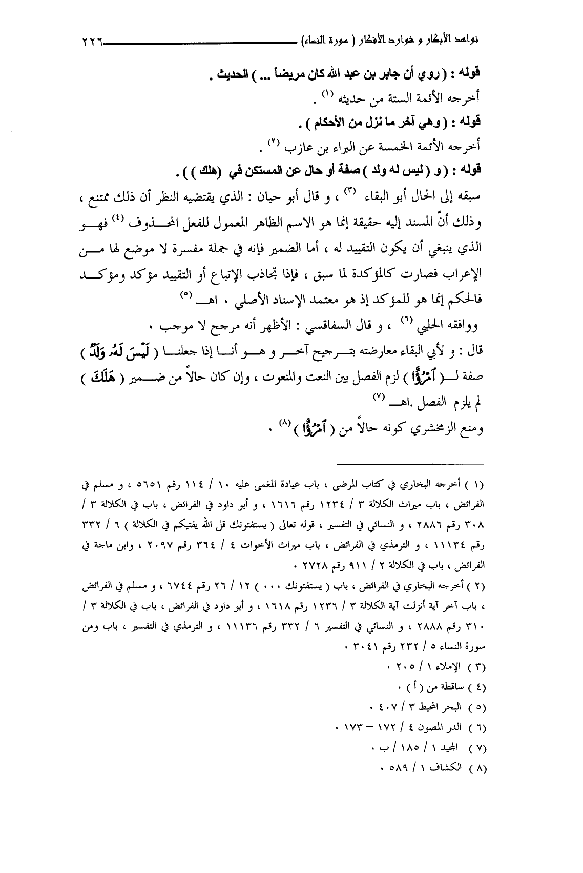 كتاب نواهد الأبكار وشوارد الأفكار = حاشية السيوطي على تفسير البيضاوي (اسم الجزء: 3)