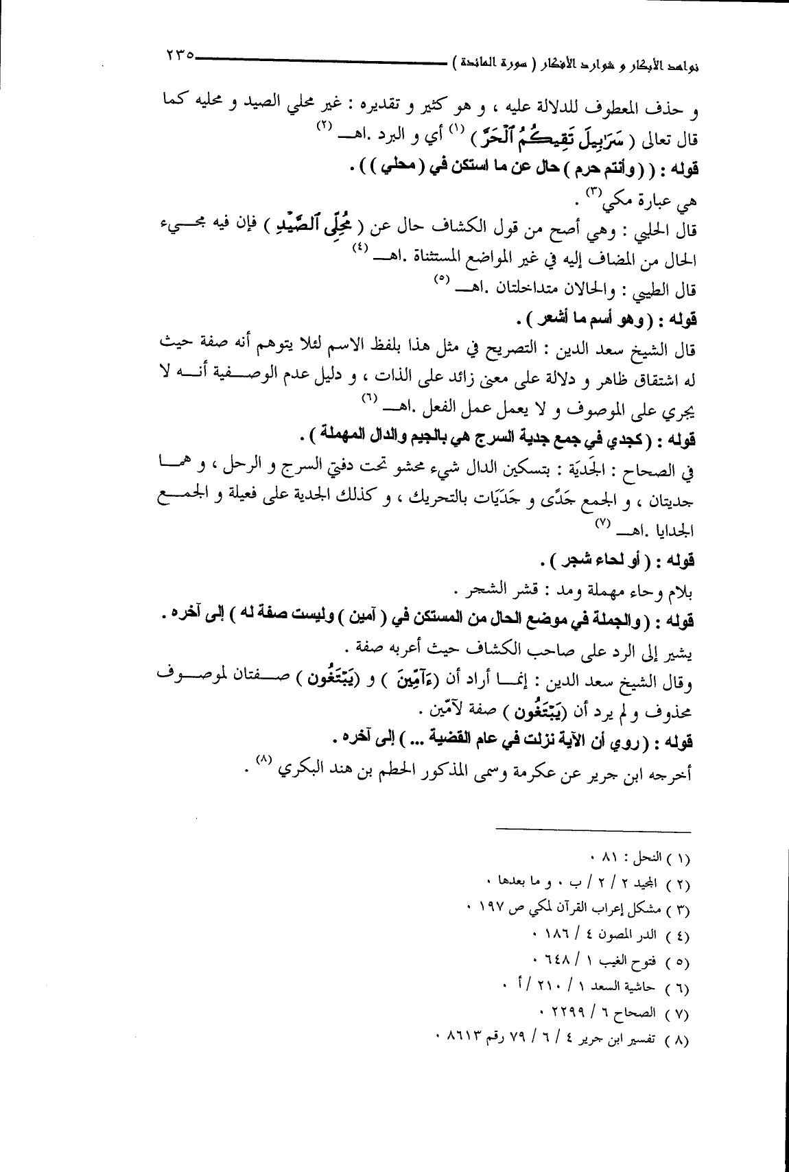 وقال الشيخ سعد الدين: إنما أراد أن (آمِّينَ) و (يَبْتَغُون) صفتان لموصوف محذوف ولم يرد أن (يَبتَغُون) صفة لـ (آمِّينَ).