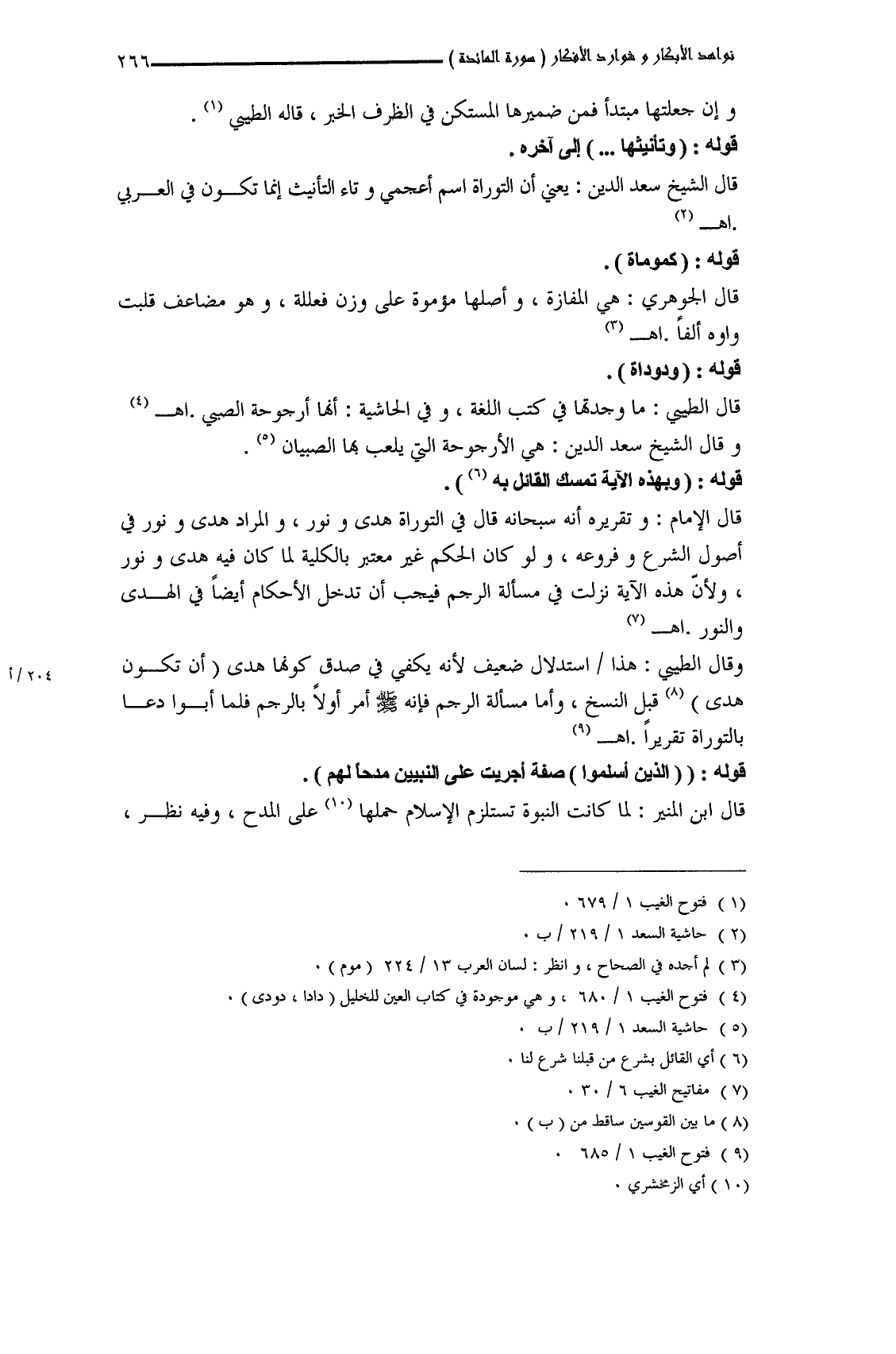 قال الشيخ سعد الدين: يعني أن التوراة اسم أعجمي وتاء التأنيث إنما تكون في العربي. اهـ