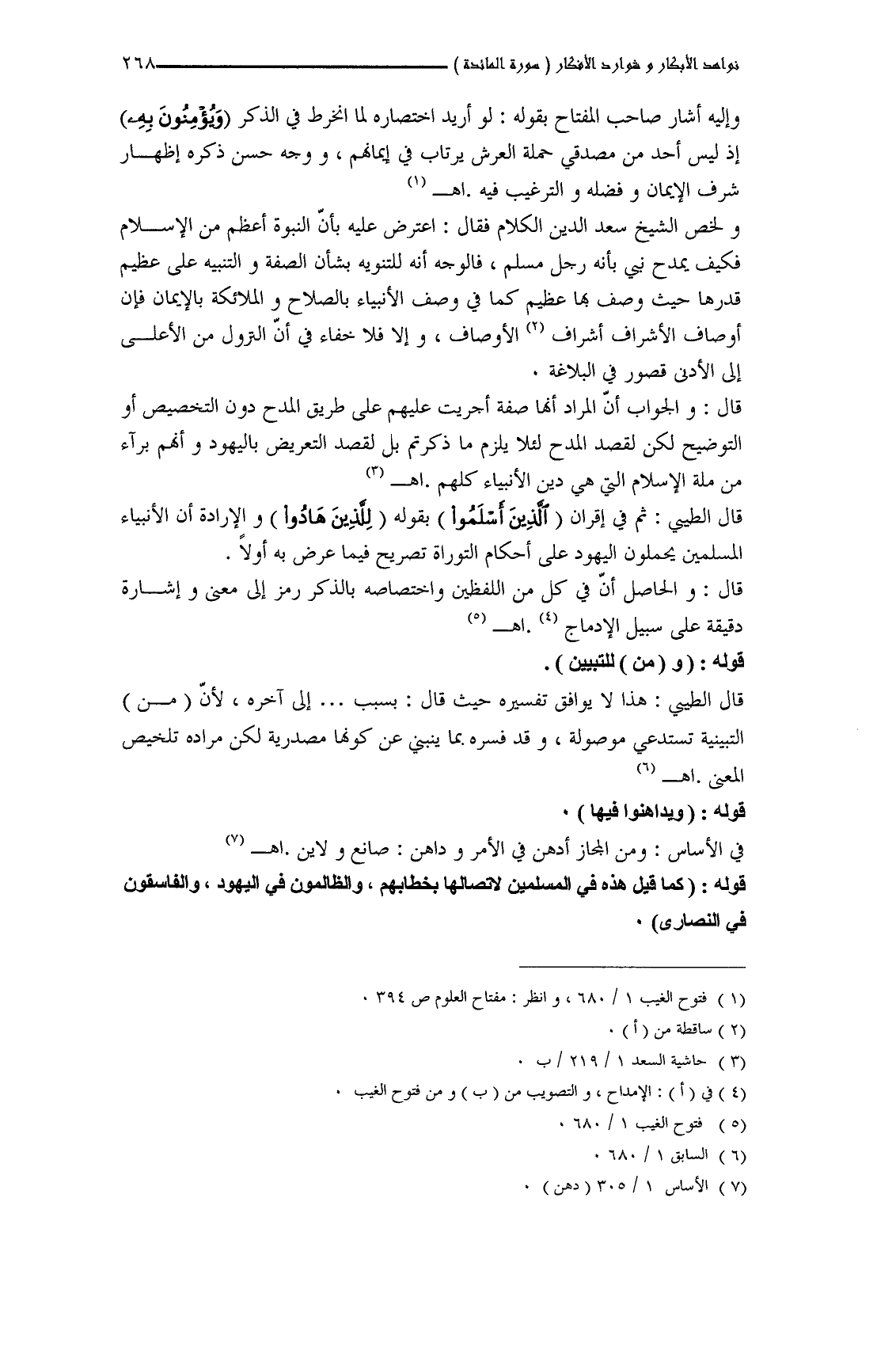 قال الطَّيبي: ثم في إقران (الَّذِينَ أَسْلَمُوا) بقوله (لِلَّذِينَ هَادُوا) والإرادة أن الأنبياء المسلمين يحملون اليهود على أحكام التوراة تصريح فيما عرض به أولاً.