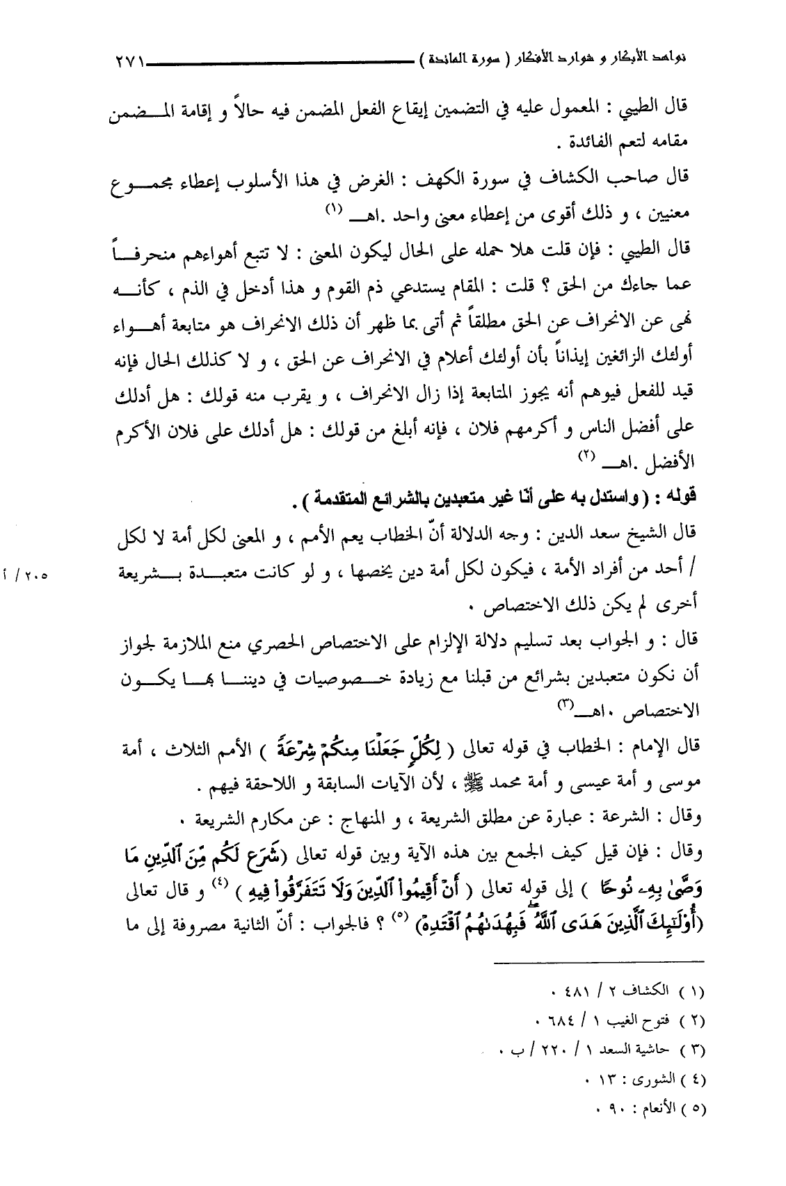 قال الشيخ سعد الدين: وجه الدلالة أنَّ الخطاب يعم الأمم، والمعنى لكل أمة لا لكل أحد من أفراد الأمة، فيكون لكل أمة دين يخصها، ولو كانت متعبدة بشريعة أخرى لم يكن ذلك الاختصاص.