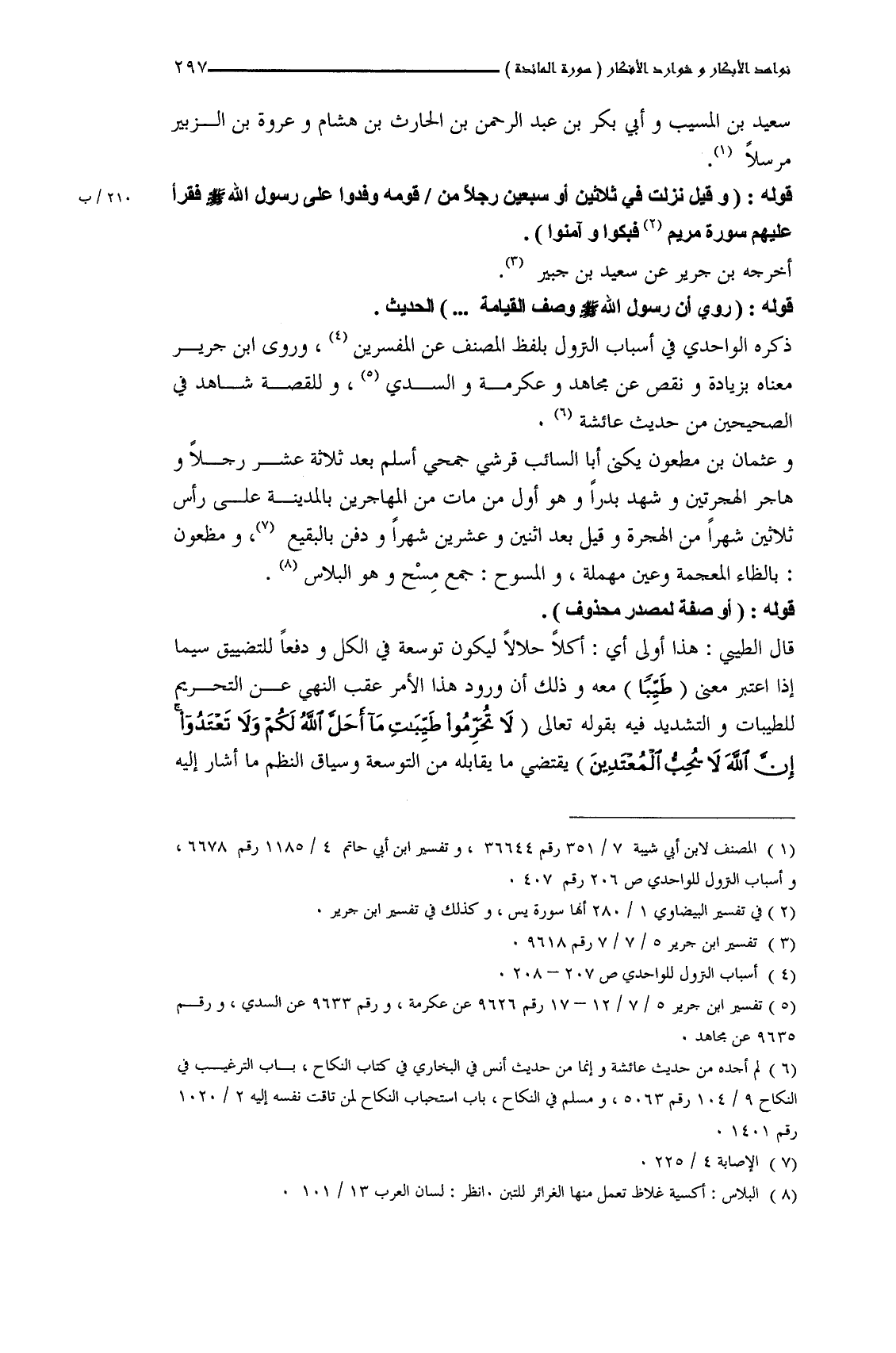 قوله: (وقيل نزلت في ثلاثين أو سبعين رجلاً من قومه وفدوا على رسول الله صلّى الله عليه وسلّم فقرأ عليهم سورة مريم فبكوا وآمنوا.).