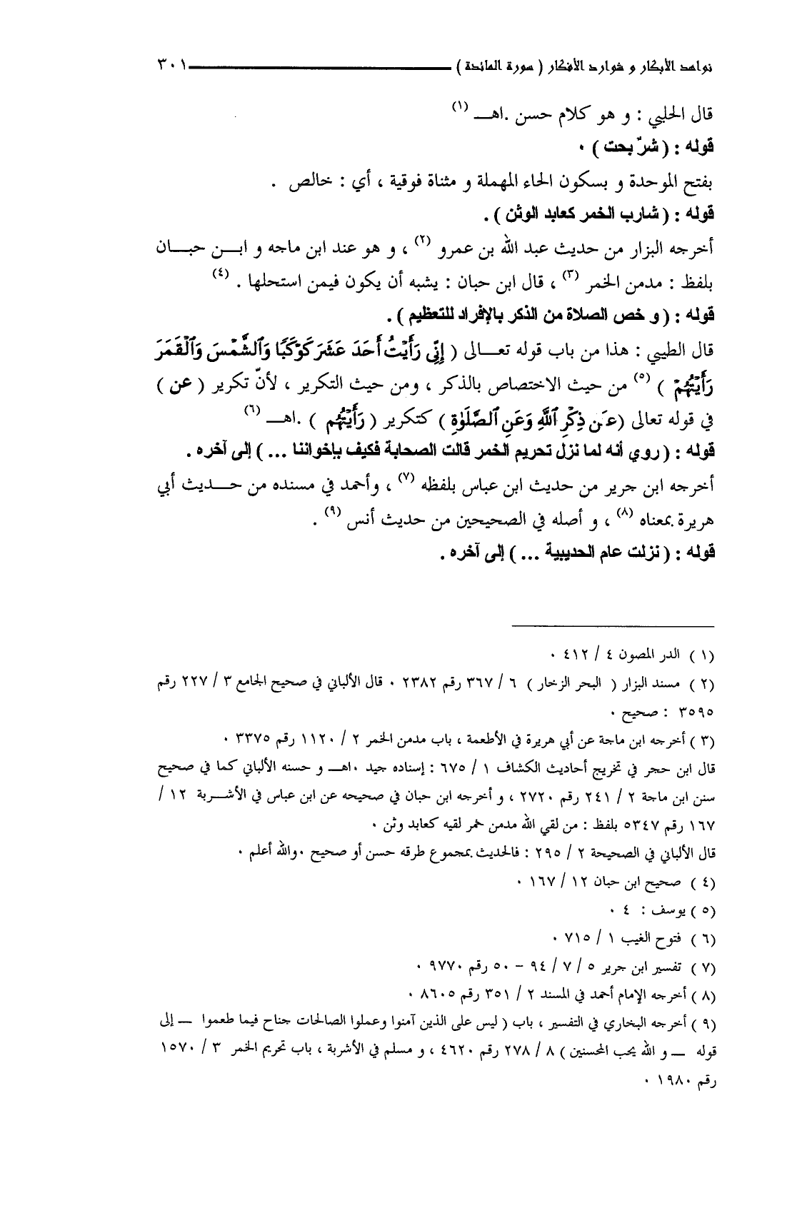 قوله: (روي أنه لما نزل تحريم الخمر قالت الصحابة فكيف بإخواننا ... ) إلى آخره.