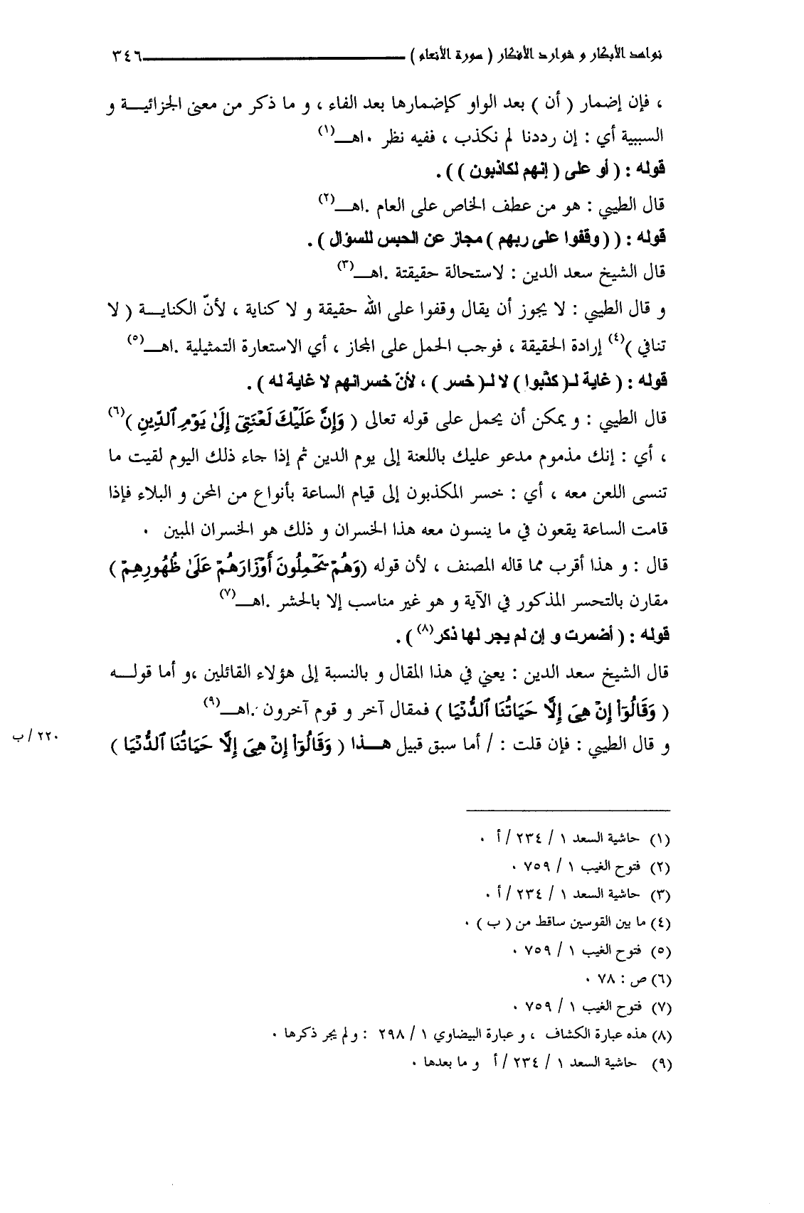 وقال الطَّيبي: فإن قلت: أما سبق قُبيل هذا (وَقَالُوا إِنْ هِيَ إِلاّ حَيَاتُنَا الدُّنْيَا)