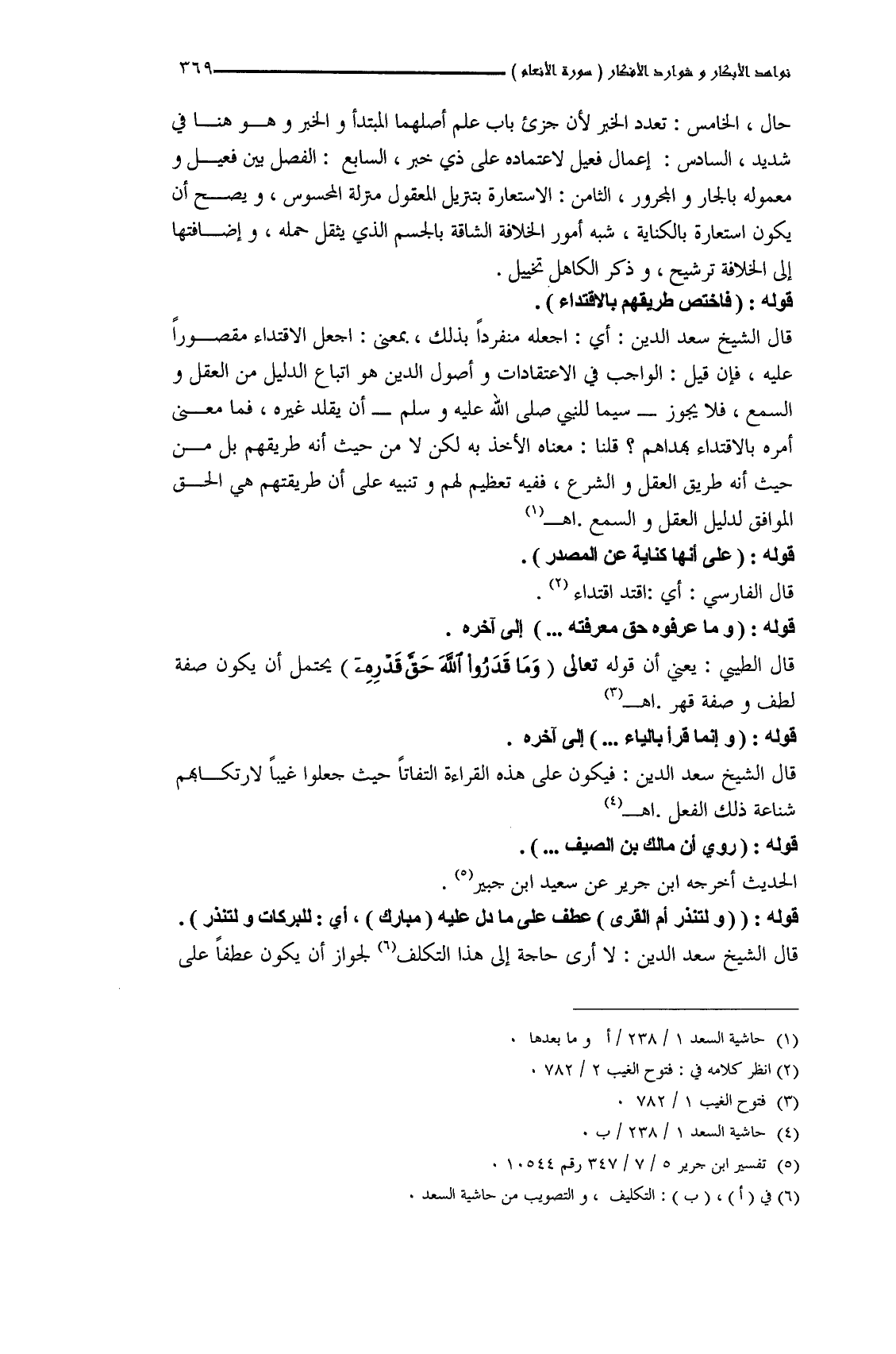 قال الشيخ سعد الدين: لا أرى حاجة إلى هذا التكلف لجواز أن يكون عطفاً على