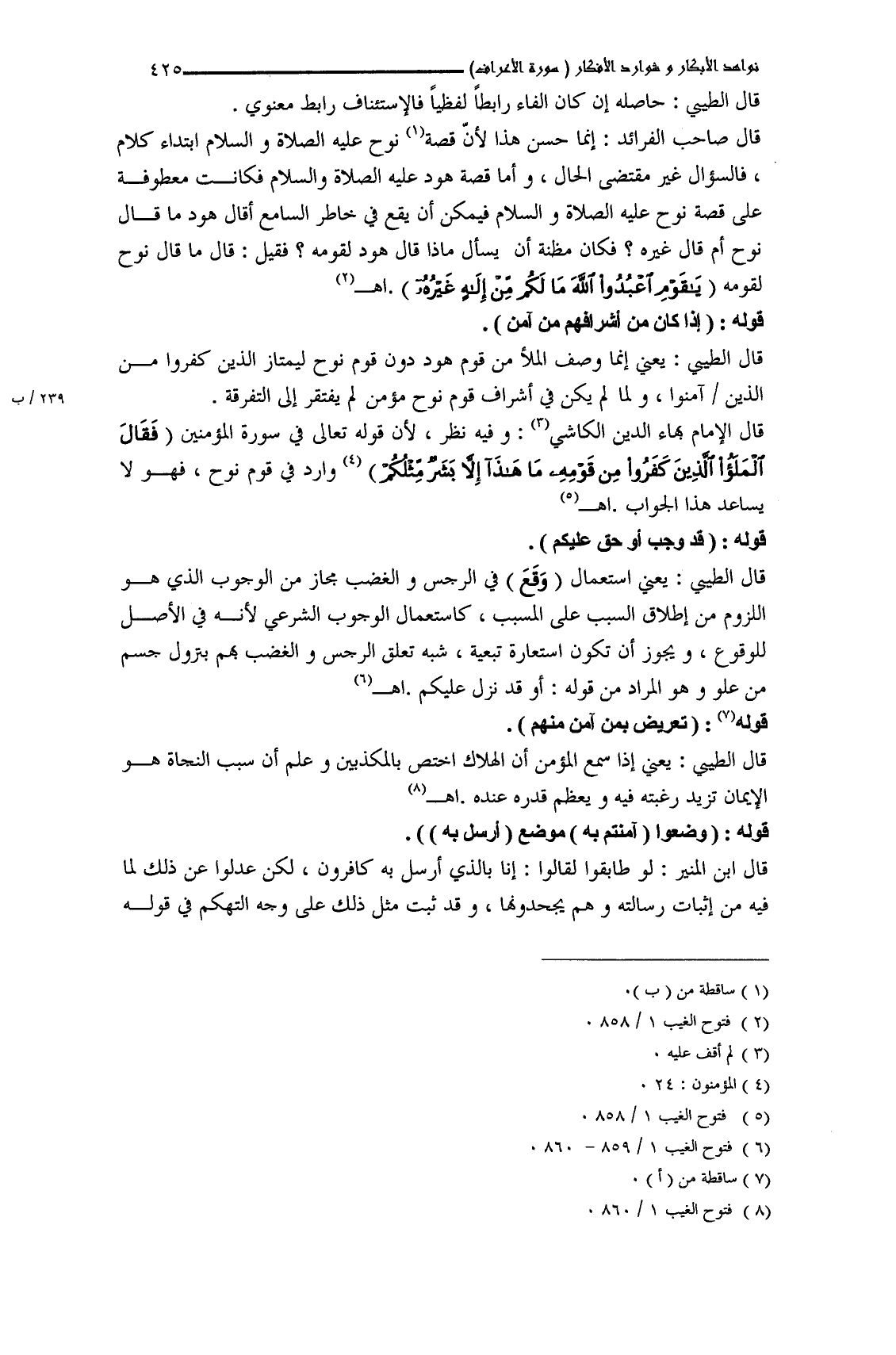 قال الإمام بهاء الدين الكاشي: وفيه نظر، لأن قوله تعالى في سورة المؤمنين (فَقَالَ الْمَلَأُ الَّذِينَ كَفَرُوا مِنْ قَوْمِهِ مَا هَذَا إِلاّ بَشَرٌ مِثْلُكُمْ) وارد في قوم نوح، فهو لا يساعد هذا الجواب. اهـ