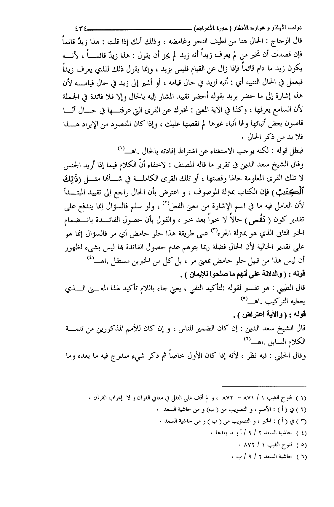 كتاب نواهد الأبكار وشوارد الأفكار = حاشية السيوطي على تفسير البيضاوي (اسم الجزء: 3)