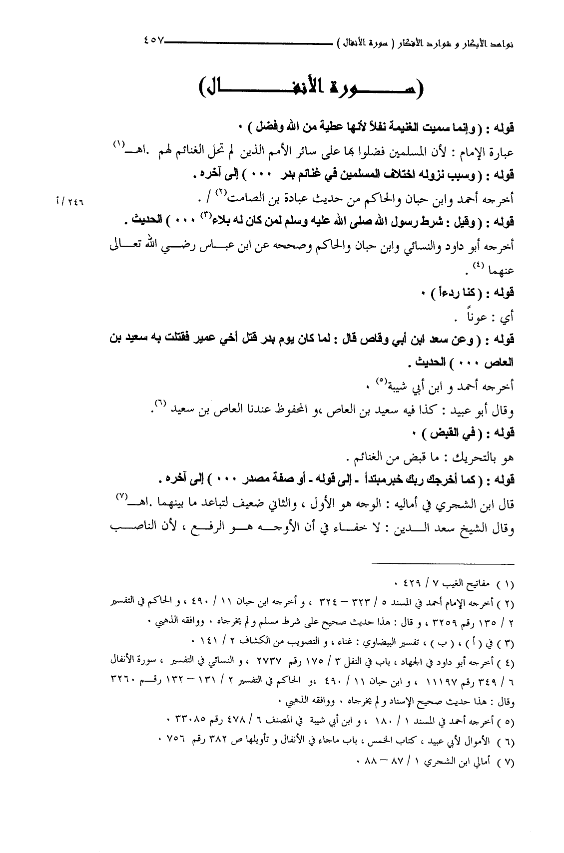 قوله: (وسبب نزوله اختلاف المسلمين في غنائم بدر ... ) إلى آخره.