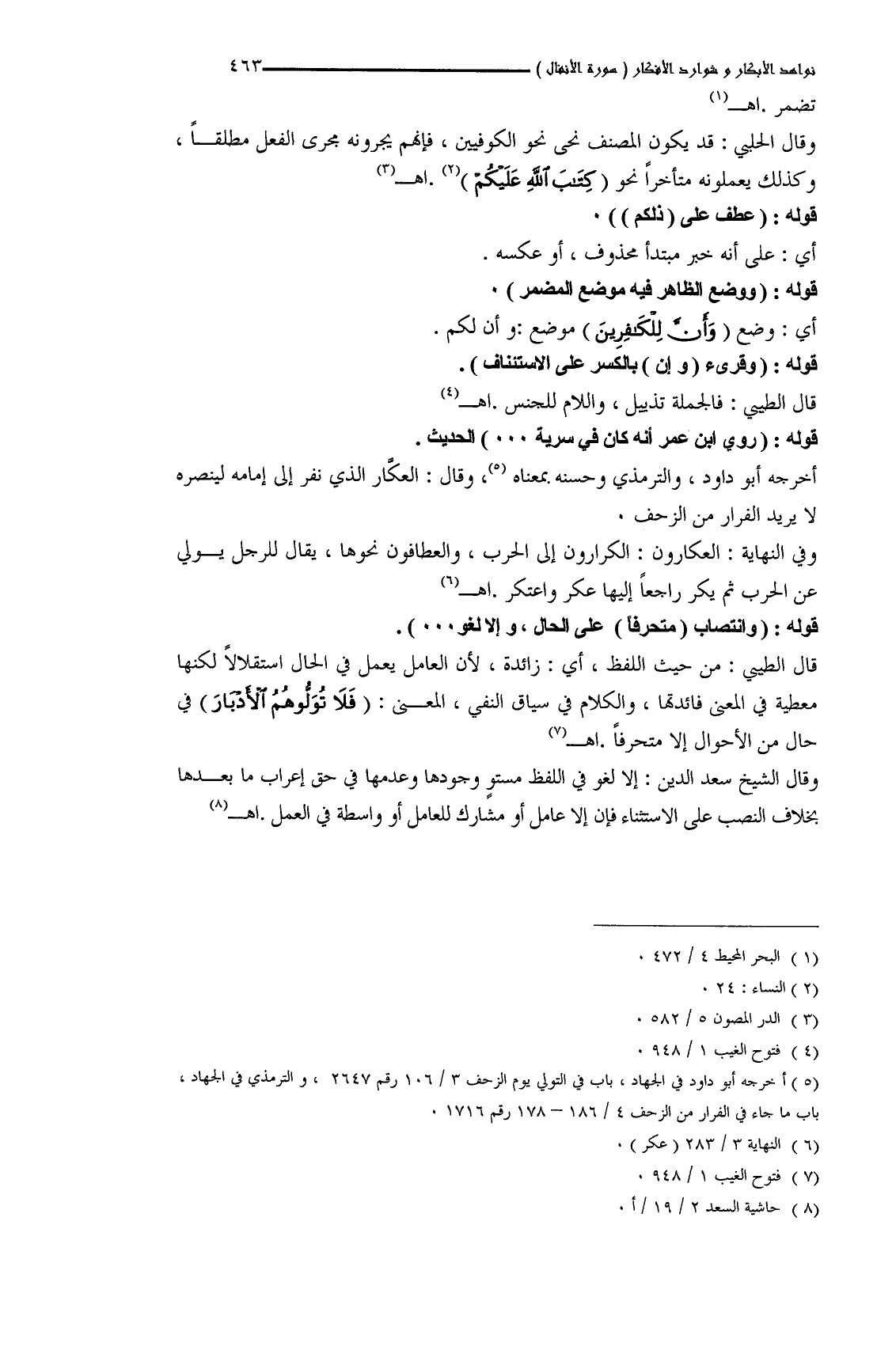 كتاب نواهد الأبكار وشوارد الأفكار = حاشية السيوطي على تفسير البيضاوي (اسم الجزء: 3)