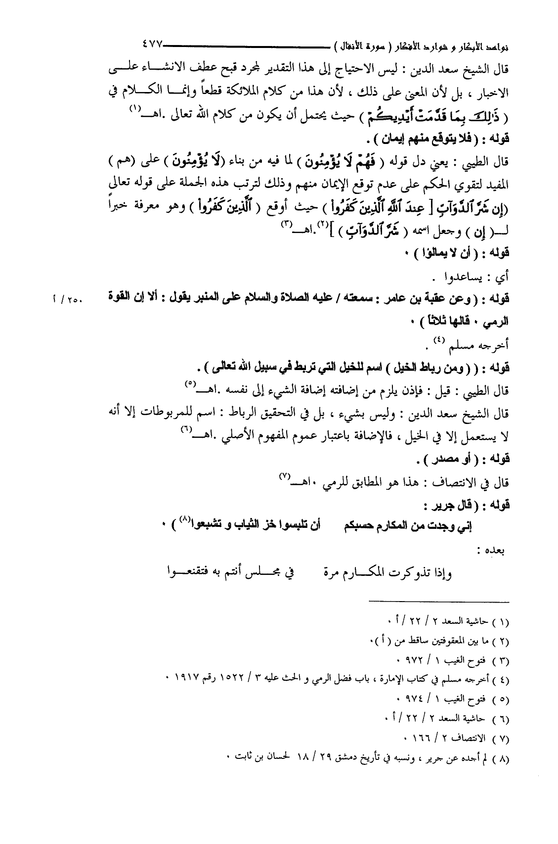 كتاب نواهد الأبكار وشوارد الأفكار = حاشية السيوطي على تفسير البيضاوي (اسم الجزء: 3)