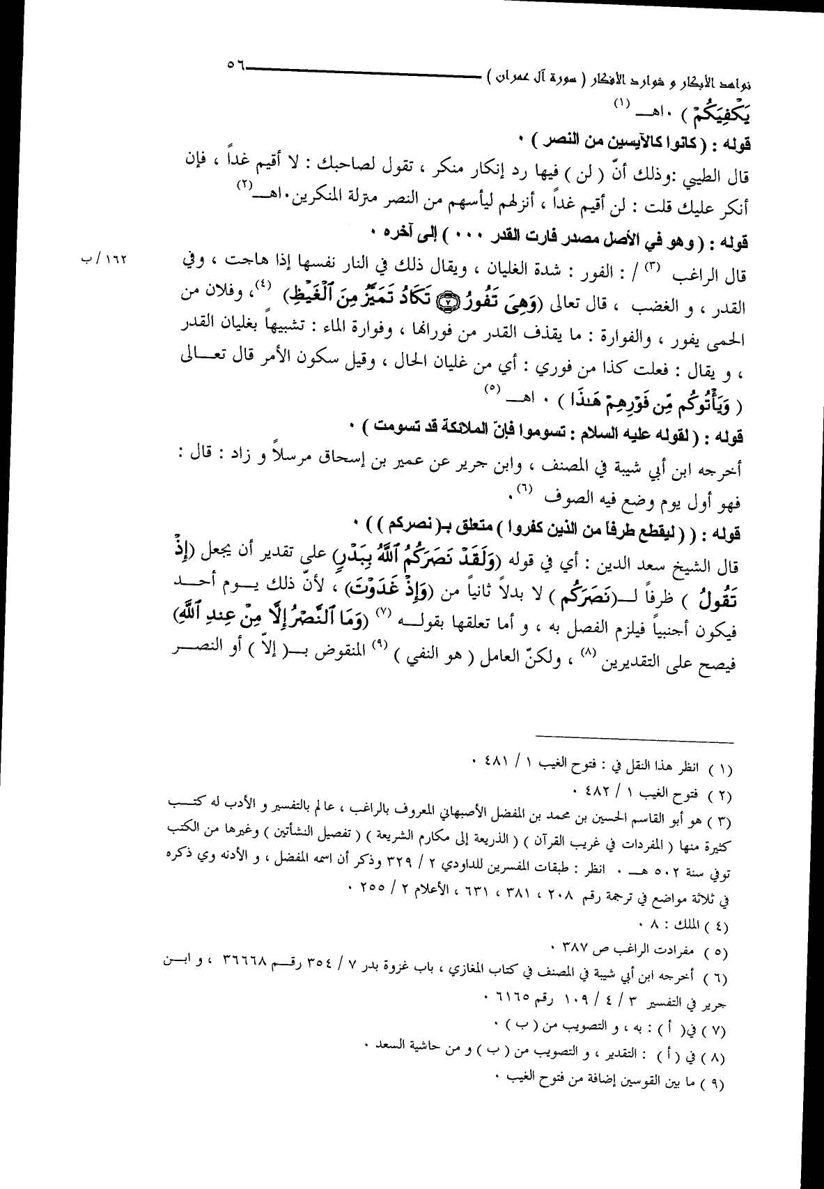 قال الشيخ سعد الدين: أي في قوله (وَلَقَدْ نَصَرَكُمُ اللهُ بِبَدْرٍ) على تقدير أن يجعل (إِذ تَقُولُ) ظرفاً لـ (نَصَرَكُم) لا بدلاً ثانياً من (وَإِذْ غَدَوْتَ)، لأنَّ ذلك يوم أحد فيكون أجنبياً فيلزم الفصل به، وأما تعلقها بقوله (وَمَا النَّصْرُ إِلَّا مِنْ عِنْدِ اللهِ) فيصح على التقديرين، ولكنّ العامل (هو النفي) المنقوض بـ (إلاّ) أو النصر