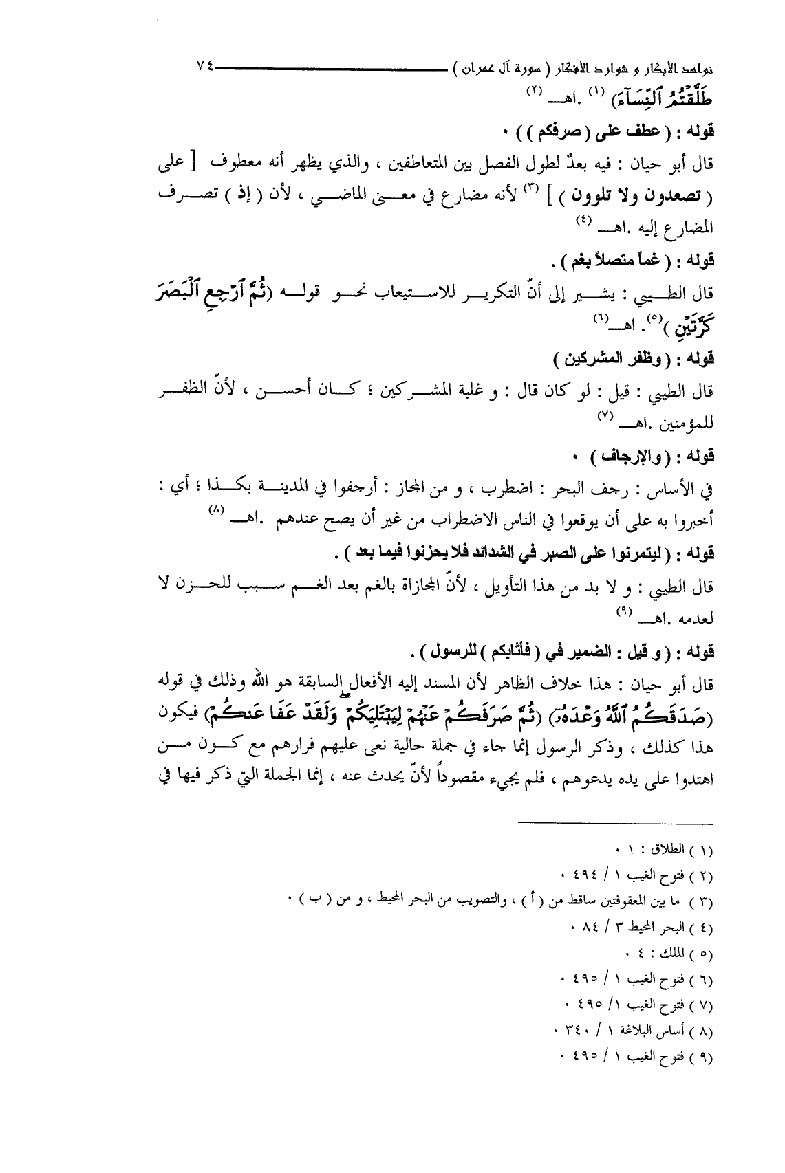 كتاب نواهد الأبكار وشوارد الأفكار = حاشية السيوطي على تفسير البيضاوي (اسم الجزء: 3)
