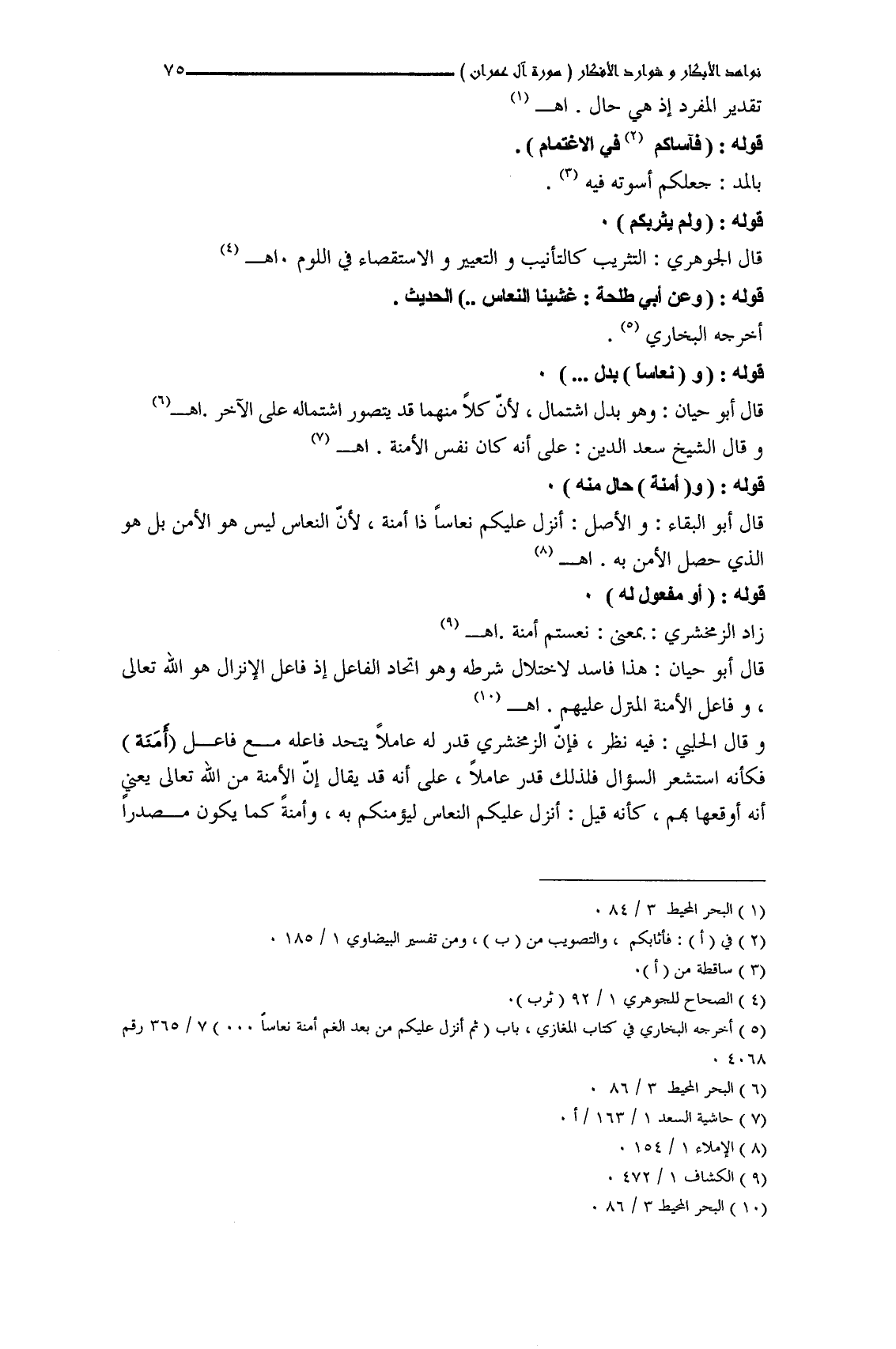 كتاب نواهد الأبكار وشوارد الأفكار = حاشية السيوطي على تفسير البيضاوي (اسم الجزء: 3)