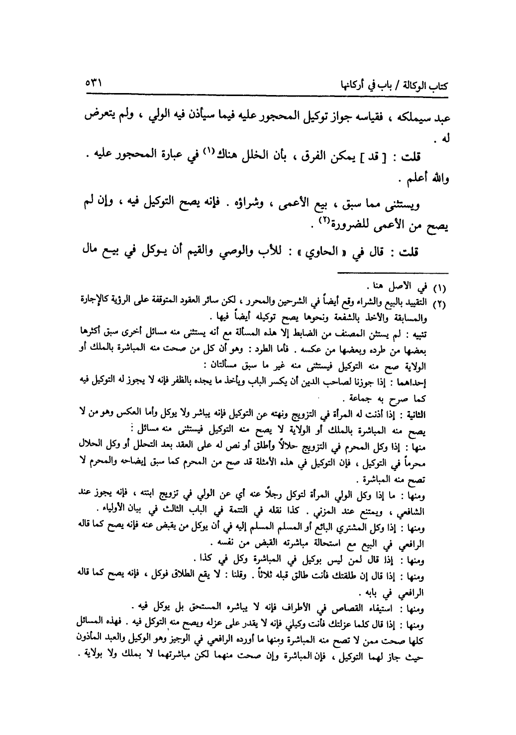 عبد سيملكه، فقياسه جواز توكيل المحجور عليه فيما سيأذن فيه الولي، ولم يتعرض له. قلت: قد يمكن الفرق، بأن الخلل هناك في عبارة المحجور عليه. والله أعلم. ويستثنى مما سبق، بيع الاعمى، وشراؤه. فإنه يصح التوكيل فيه، وإن لم يصح من الاعمى للضرورة. قلت: قال في الحاوي: للاب والوصي والقيم أن يوكل في بيع مال