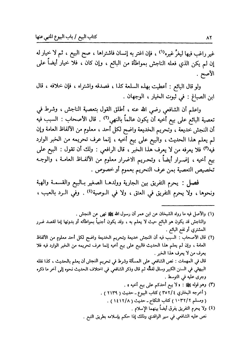 غير راغب فيها ليغر غيره. فإن اغتر به إنسان فاشتراها، صح البيع، ثم لا خيار له إن لم يكن الذي فعله الناجش بمواطأة من البائع، وإن كان، فلا خيار أيضا على الاصح. ولو قال البائع: أعطيت بهذه السلعة كذا، فصدقه واشتراه، فبان خلافه، قال ابن الصباغ: في ثبوت الخيار، الوجهان. واعلم أن الشافعي رضي الله عنه، أطلق القول بتعصية الناجش، وشرط في تعصية البائع على بيع أخيه أن يكون عالما بالنهي. قال الاصحاب: السبب فيه أن النجش خديعة، وتحريم الخديعة واضح لكل أحد، معلوم من الالفاظ العامة وإن لم يعلم هذا الحديث، والبيع على بيع أخيه، إنما عرف تحريمه من الخبر الوارد فيه فلا يعرفه من لا يعرف هذا الخبر، قال الرافعي: ولك أن تقول: البيع على بيع أخيه، إضرار أيضا، وتحريم الاضرار معلوم من الالفاظ العامة، والوجه تخصيص التعصية بمن عرف التحريم بعموم أو خصوص.