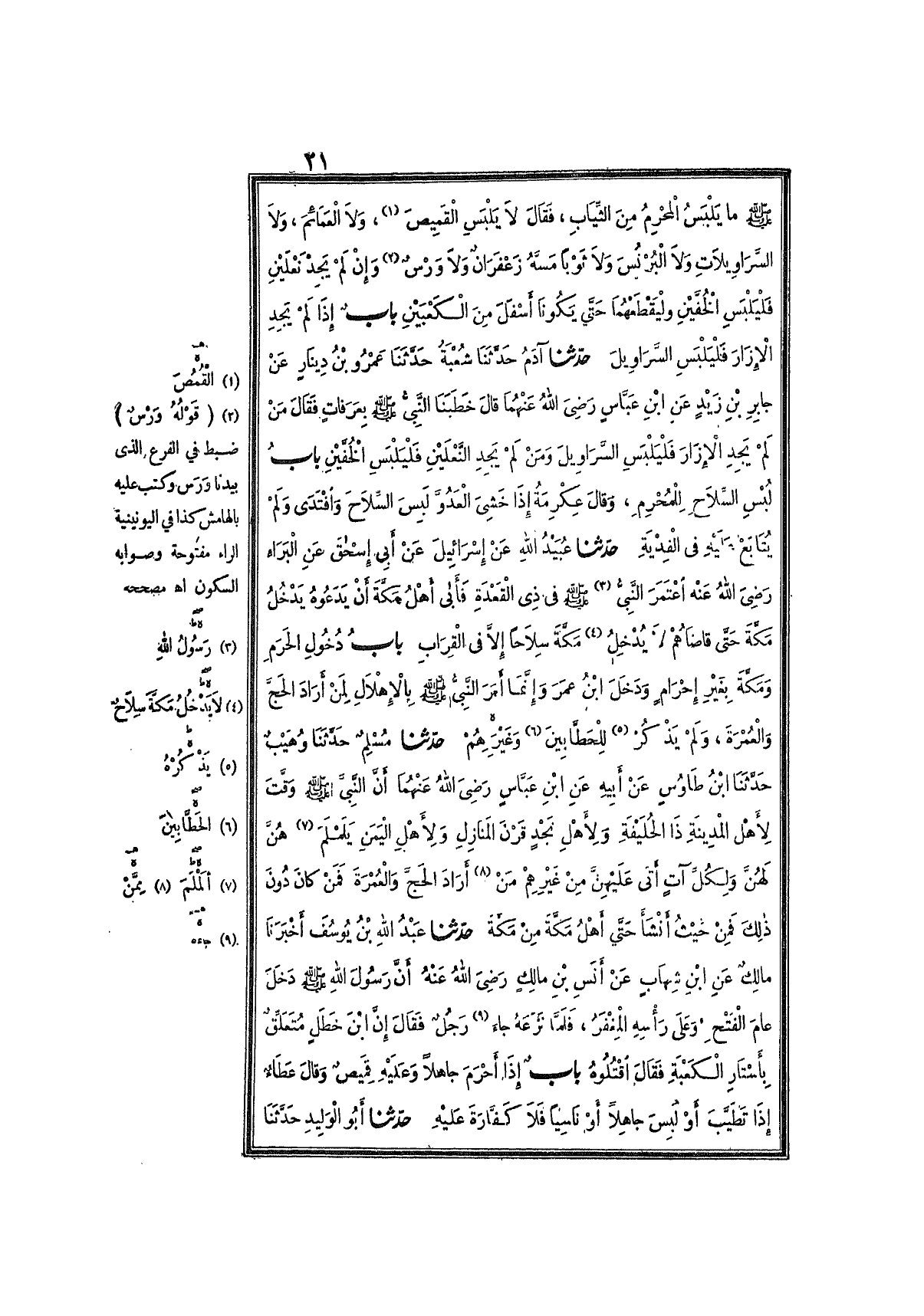 1843- حَدَّثَنَا آدَمُ ، حَدَّثَنَا شُعْبَةُ ، حَدَّثَنَا عَمْرُو بْنُ دِينَارٍ ، عَنْ جَابِرِ بْنِ زَيْدٍ ، عَنِ ابْنِ عَبَّاسٍ ، رَضِيَ اللَّهُ عَنْهُمَا ، قَالَ : خَطَبَنَا النَّبِيُّ صَلَّى اللَّهُ عَلَيْهِ وَسَلَّمَ بِعَرَفَاتٍ ، فَقَالَ : مَنْ لَمْ يَجِدِ الإِزَارَ , فَلْيَلْبَسِ السَّرَاوِيلَ ، وَمَنْ لَمْ يَجِدِ النَّعْلَيْنِ , فَلْيَلْبَسِ الخُفَّيْنِ.