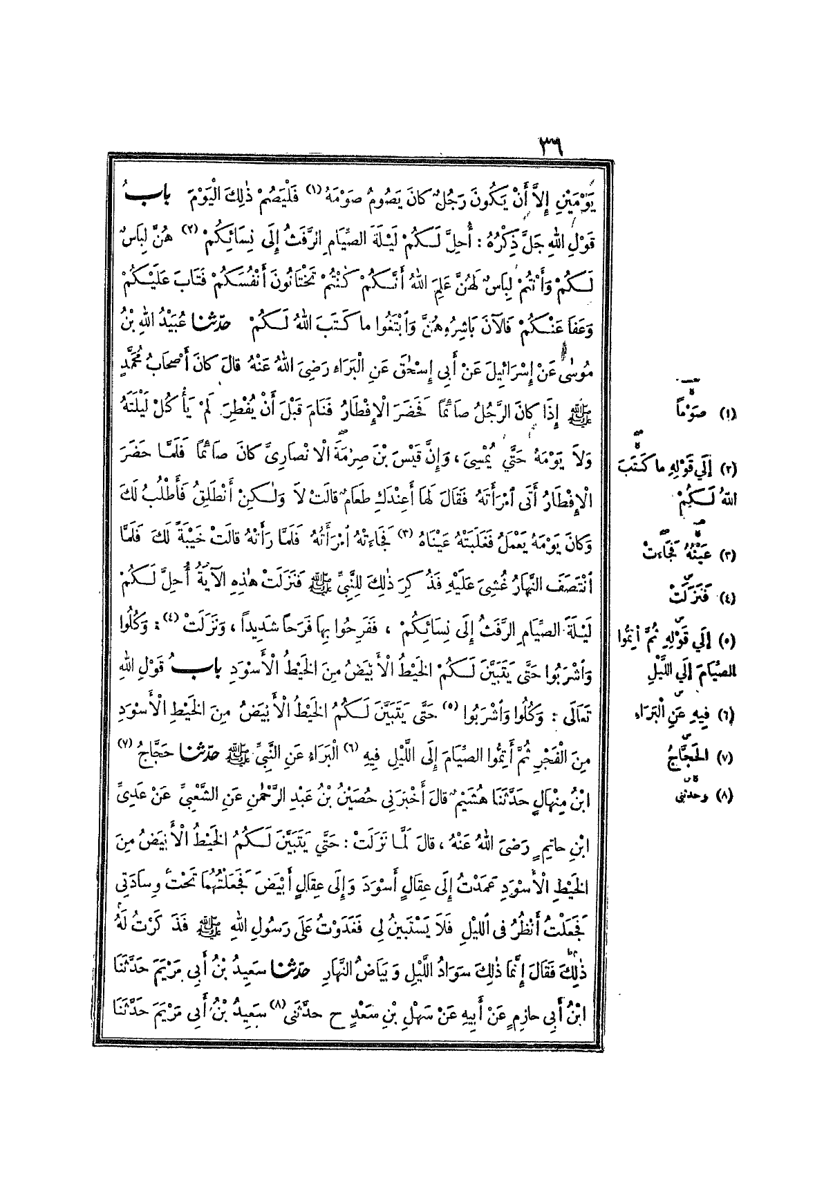 16- بَابُ قَوْلِ اللهِ تَعَالَى : {وَكُلُوا وَاشْرَبُوا حَتَّى يَتَبَيَّنَ لَكُمُ الخَيْطُ الأَبْيَضُ مِنَ الخَيْطِ الأَسْوَدِ مِنَ الفَجْرِ ثُمَّ أَتِمُّوا الصِّيَامَ إِلَى اللَّيْلِ}.