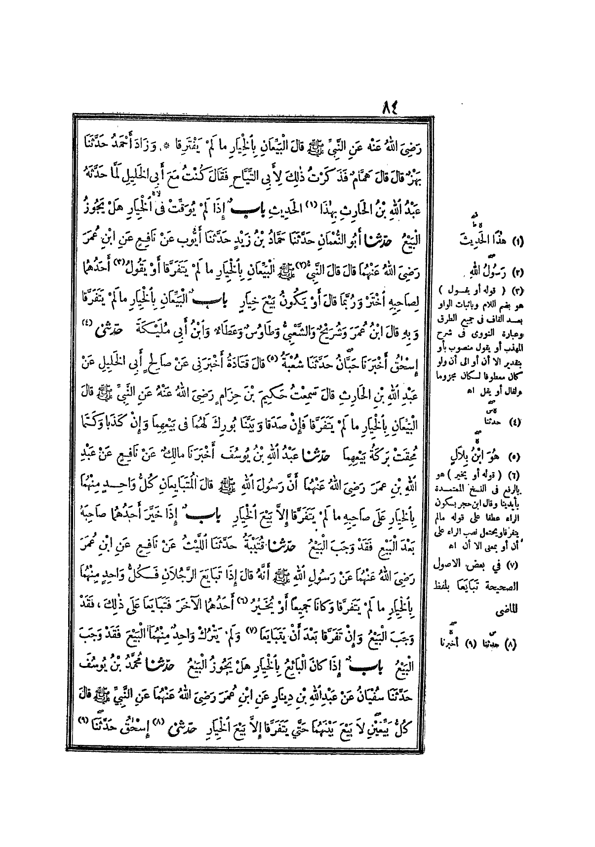 2109- حَدَّثَنَا أَبُو النُّعْمَانِ ، حَدَّثَنَا حَمَّادُ بْنُ زَيْدٍ ، حَدَّثَنَا أَيُّوبُ ، عَنْ نَافِعٍ ، عَنِ ابْنِ عُمَرَ ، رَضِيَ اللَّهُ عَنْهُمَا ، قَالَ : قَالَ النَّبِيُّ صَلَّى اللَّهُ عَلَيْهِ وَسَلَّمَ : البَيِّعَانِ بِالخِيَارِ مَا لَمْ يَتَفَرَّقَا ، أَوْ يَقُولُ أَحَدُهُمَا لِصَاحِبِهِ : اخْتَرْ ، وَرُبَّمَا قَالَ : أَوْ يَكُونُ بَيْعَ خِيَارٍ.
