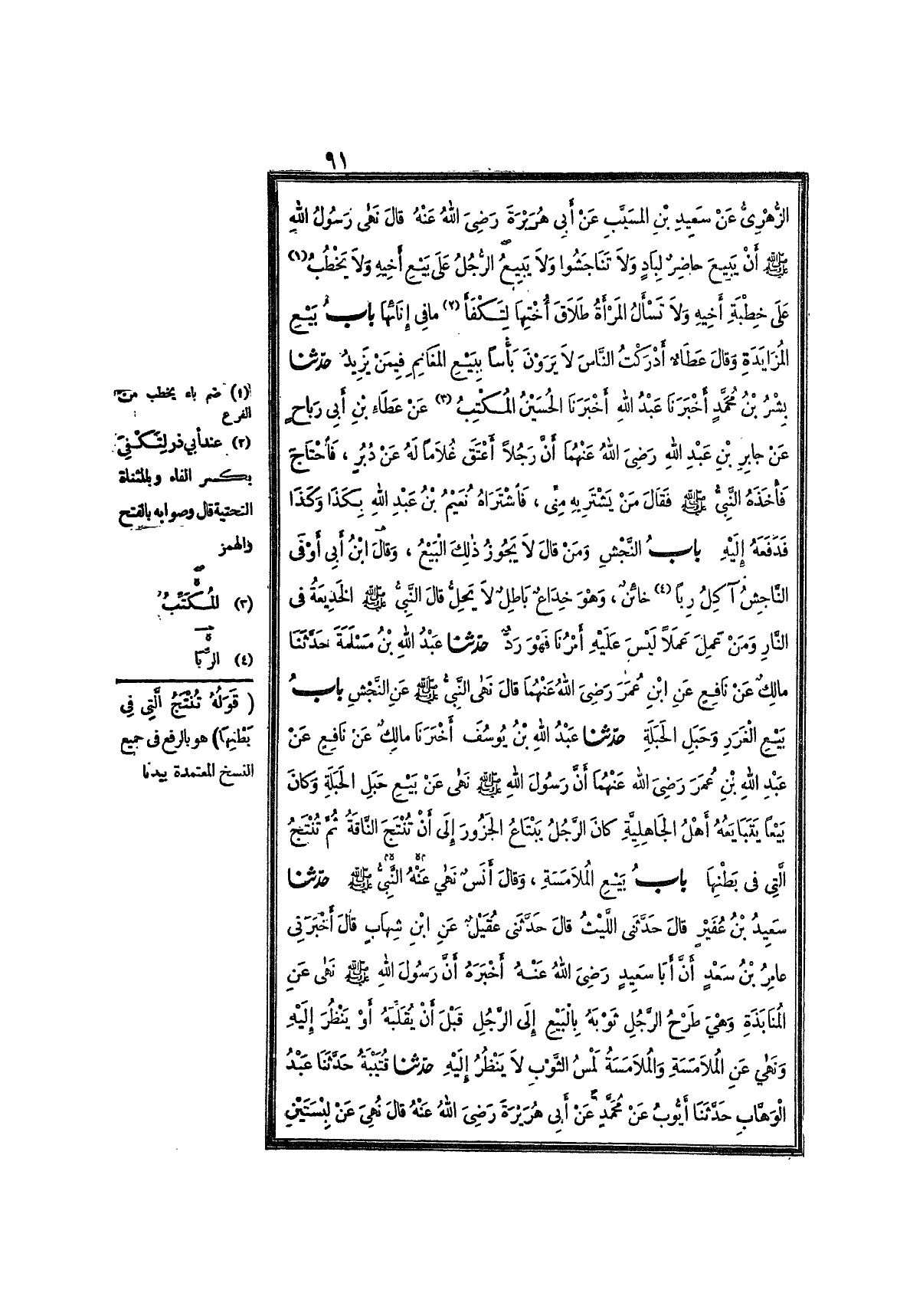 2145- حَدَّثَنَا قُتَيْبَةُ ، حَدَّثَنَا عَبْدُ الوَهَّابِ ، حَدَّثَنَا أَيُّوبُ ، عَنْ مُحَمَّدٍ ، عَنْ أَبِي هُرَيْرَةَ ، رَضِيَ اللَّهُ عَنْهُ ، قَالَ : نُهِيَ عَنْ لِبْسَتَيْنِ : أَنْ يَحْتَبِيَ الرَّجُلُ فِي الثَّوْبِ الوَاحِدِ ، ثُمَّ يَرْفَعَهُ عَلَى مَنْكِبِهِ ، وَعَنْ بَيْعَتَيْنِ : اللِّمَاسِ , وَالنِّبَاذِ.