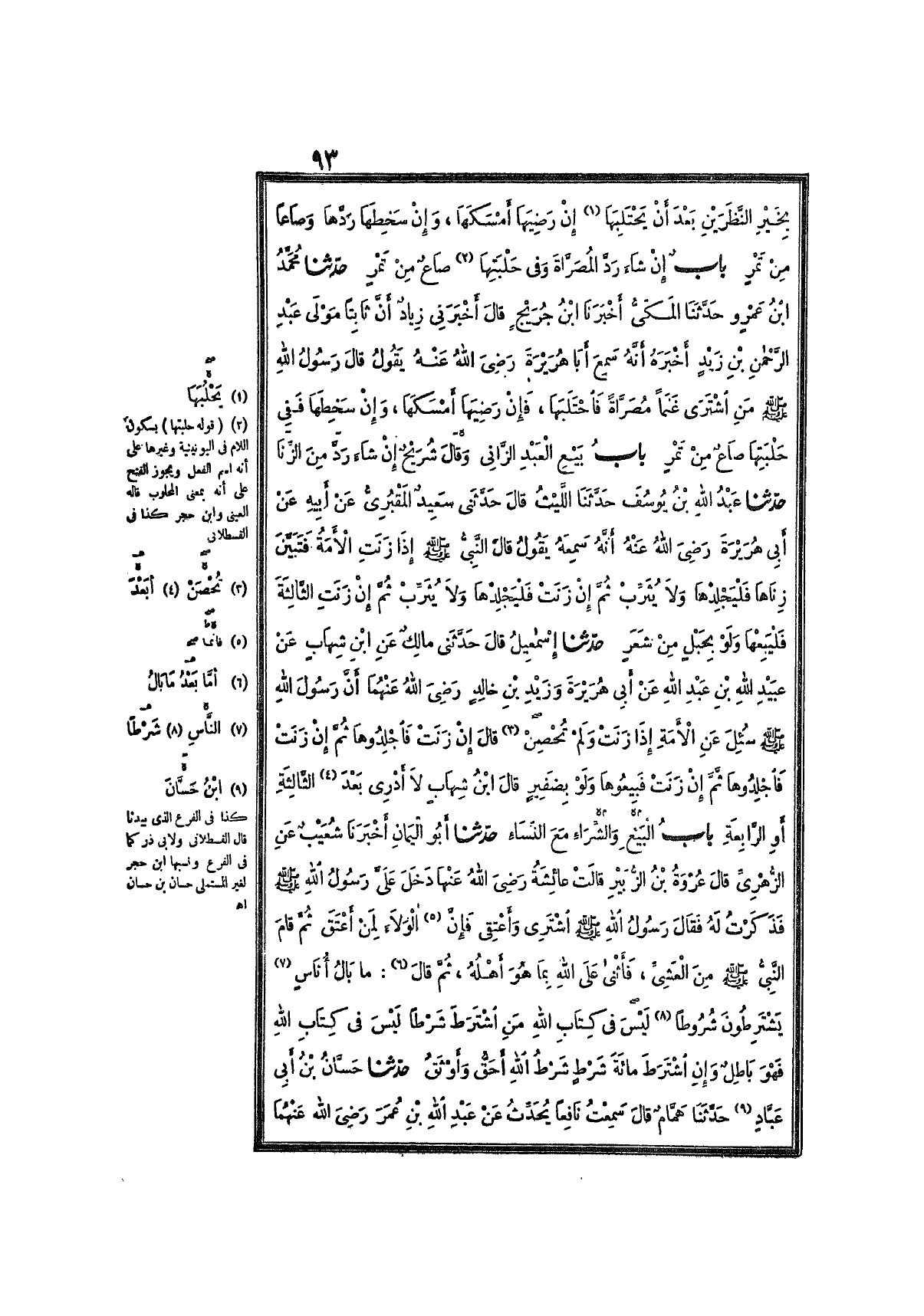 2156- حَدَّثَنَا حَسَّانُ بْنُ أَبِي عَبَّادٍ ، حَدَّثَنَا هَمَّامٌ ، قَالَ : سَمِعْتُ نَافِعًا يُحَدِّثُ عَنْ عَبْدِ اللهِ بْنِ عُمَرَ ، رَضِيَ اللَّهُ عَنْهُمَا ؛ أَنَّ عَائِشَةَ ، رَضِيَ اللَّهُ عَنْهَا , سَاوَمَتْ بَرِيرَةَ ، فَخَرَجَ إِلَى الصَّلاَةِ ، فَلَمَّا جَاءَ , قَالَتْ : إِنَّهُمْ أَبَوْا أَنْ يَبِيعُوهَا إِلاَّ أَنْ يَشْتَرِطُوا الوَلاَءَ ، فَقَالَ النَّبِيُّ صَلَّى اللَّهُ عَلَيْهِ وَسَلَّمَ : إِنَّمَا الوَلاَءُ لِمَنْ أَعْتَقَ , قُلْتُ لِنَافِعٍ : حُرًّا كَانَ زَوْجُهَا ، أَوْ عَبْدًا ؟ فَقَالَ : مَا يُدْرِينِي.