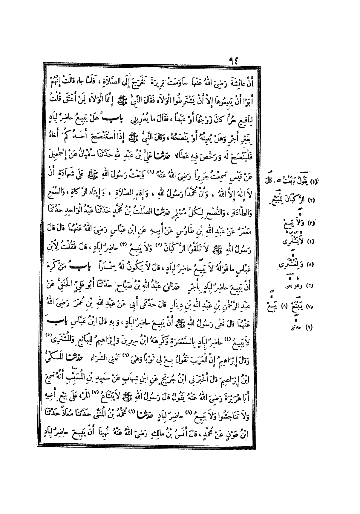 2157- حَدَّثَنَا عَلِيُّ بْنُ عَبْدِ اللهِ ، حَدَّثَنَا سُفْيَانُ ، عَنْ إِسْمَاعِيلَ ، عَنْ قَيْسٍ ، سَمِعْتُ جَرِيرًا ، رَضِيَ اللَّهُ عَنْهُ , يَقُولُ : بَايَعْتُ رَسُولَ اللهِ صَلَّى اللَّهُ عَلَيْهِ وَسَلَّمَ عَلَى شَهَادَةِ أَنْ لاَ إِلَهَ إِلاَّ اللَّهُ ، وَأَنَّ مُحَمَّدًا رَسُولُ اللهِ ، وَإِقَامِ الصَّلاَةِ ، وَإِيتَاءِ الزَّكَاةِ ، وَالسَّمْعِ وَالطَّاعَةِ ، وَالنُّصْحِ لِكُلِّ مُسْلِمٍ.