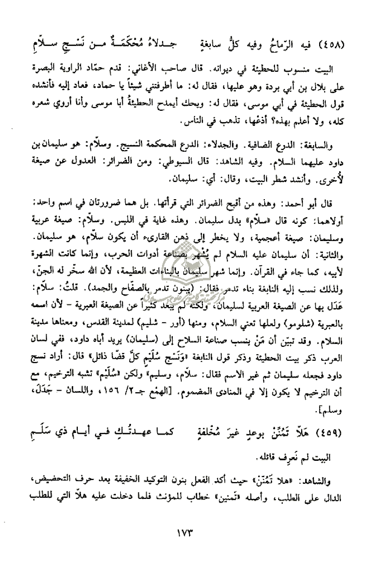 458 - فيه الرّماح وفيه كلّ سابغة … جدلاء محكمة من نسج سلّام