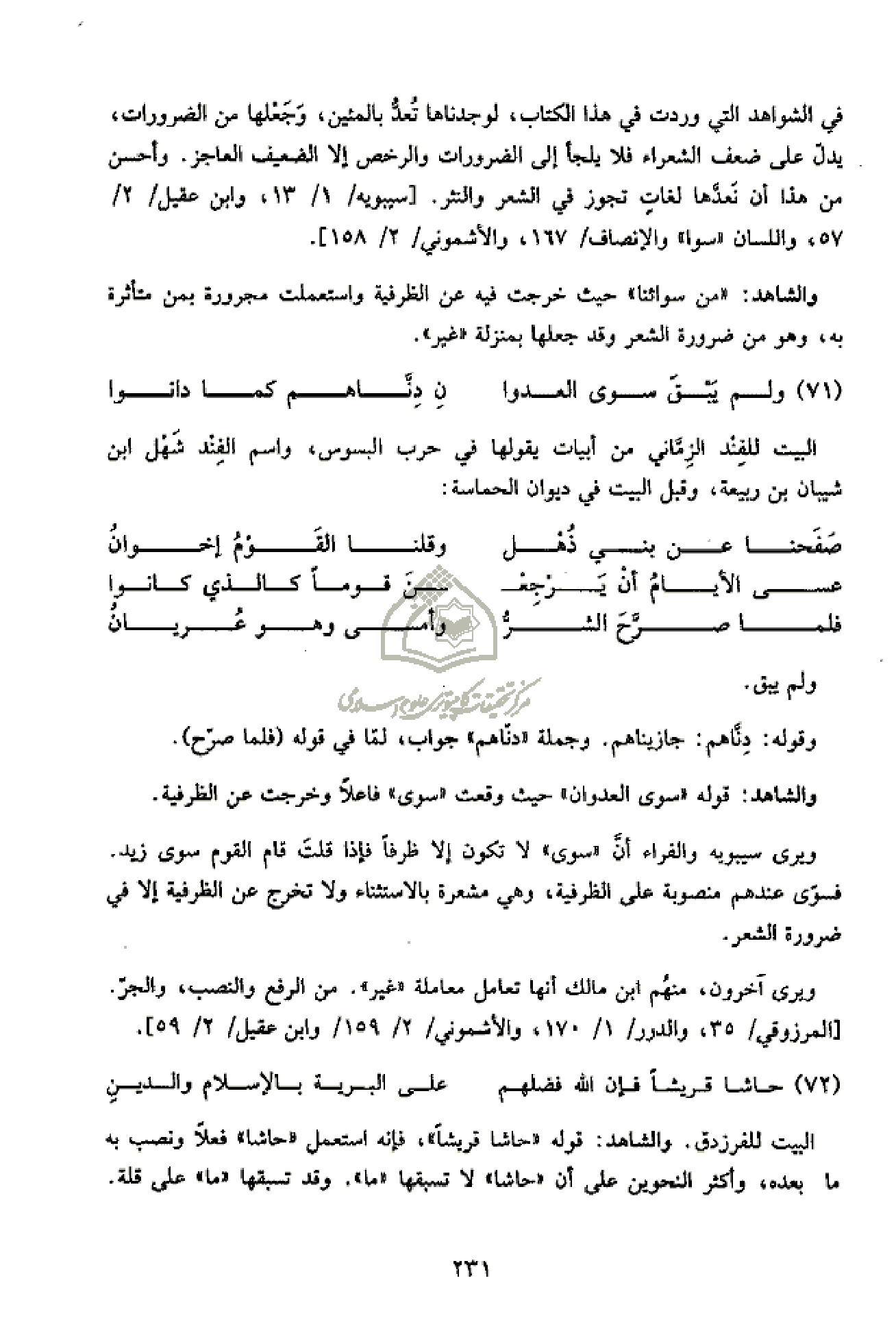 [سيبويه/ 1/ 13، وابن عقيل/ 2/ 57، واللسان «سوا» والإنصاف/ 167، والأشموني/ 2/ 158].