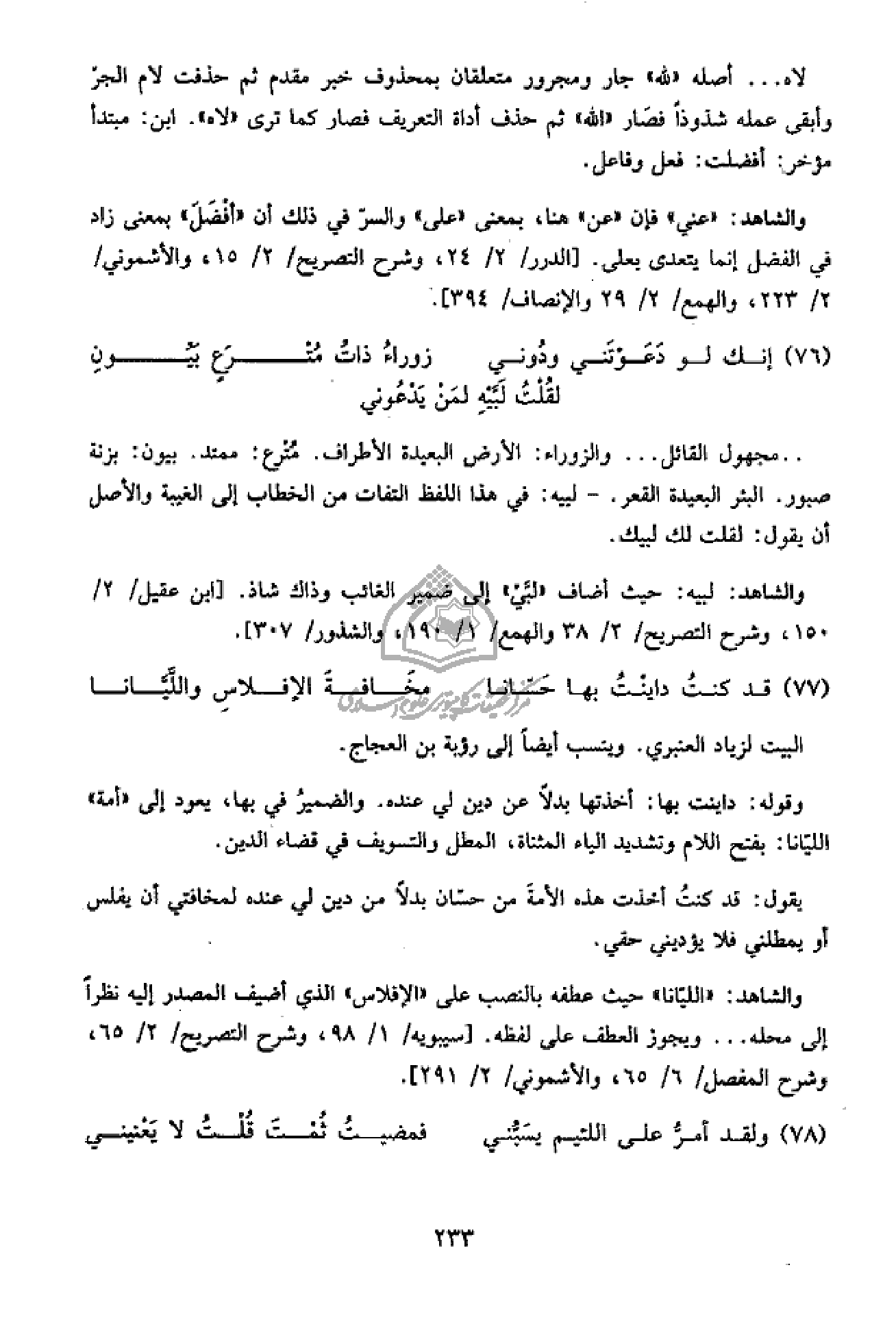 والشاهد: لبيه: حيث أضاف «لبّي» إلى ضمير الغائب وذاك شاذ. [ابن عقيل/ 2/ 150، وشرح التصريح/ 2/ 38 والهمع/ 1/ 190، والشذور/ 307].