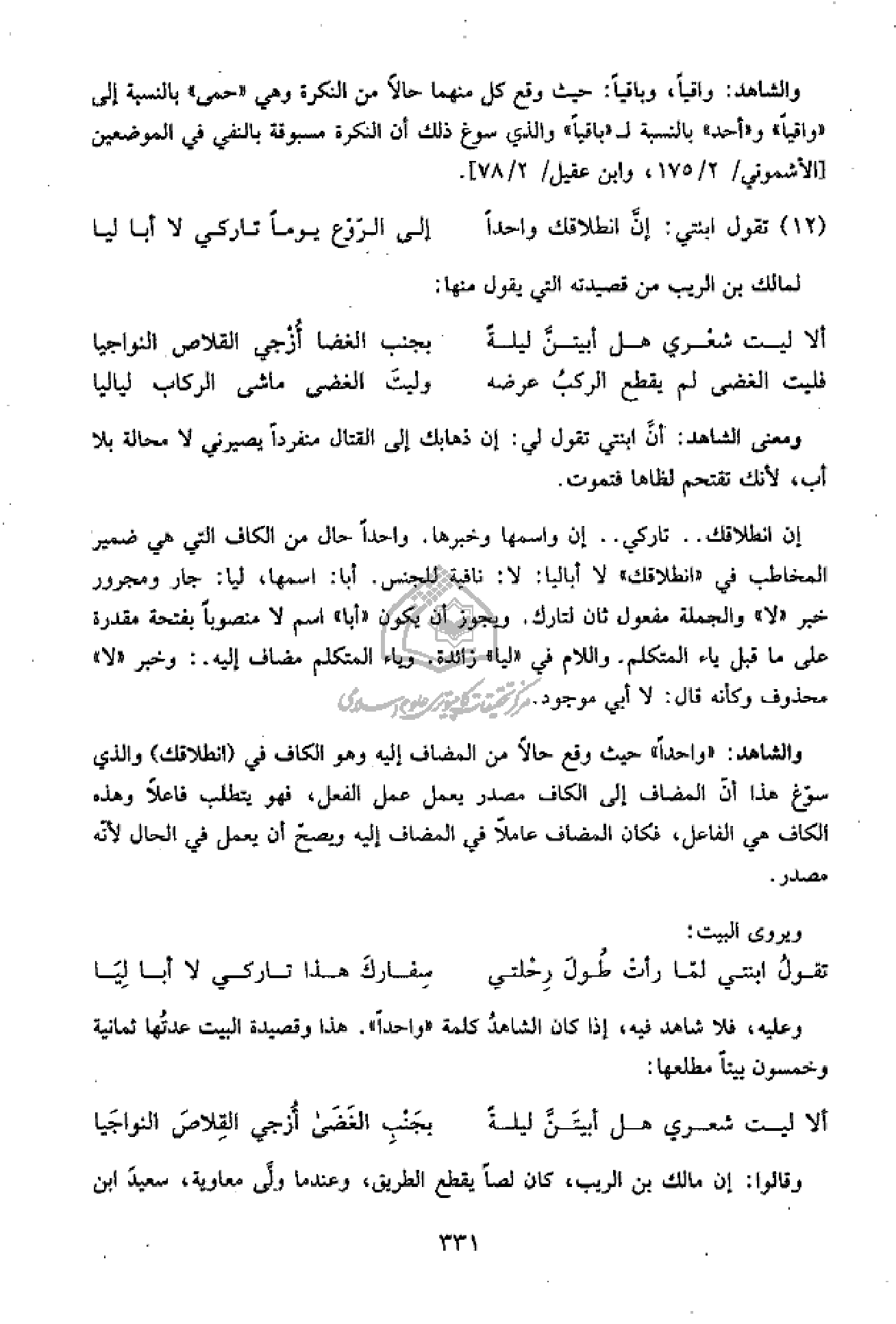 وعليه، فلا شاهد فيه، إذا كان الشاهد كلمة «واحدا». هذا وقصيدة البيت عدتها ثمانية وخمسون بيتا مطلعها: