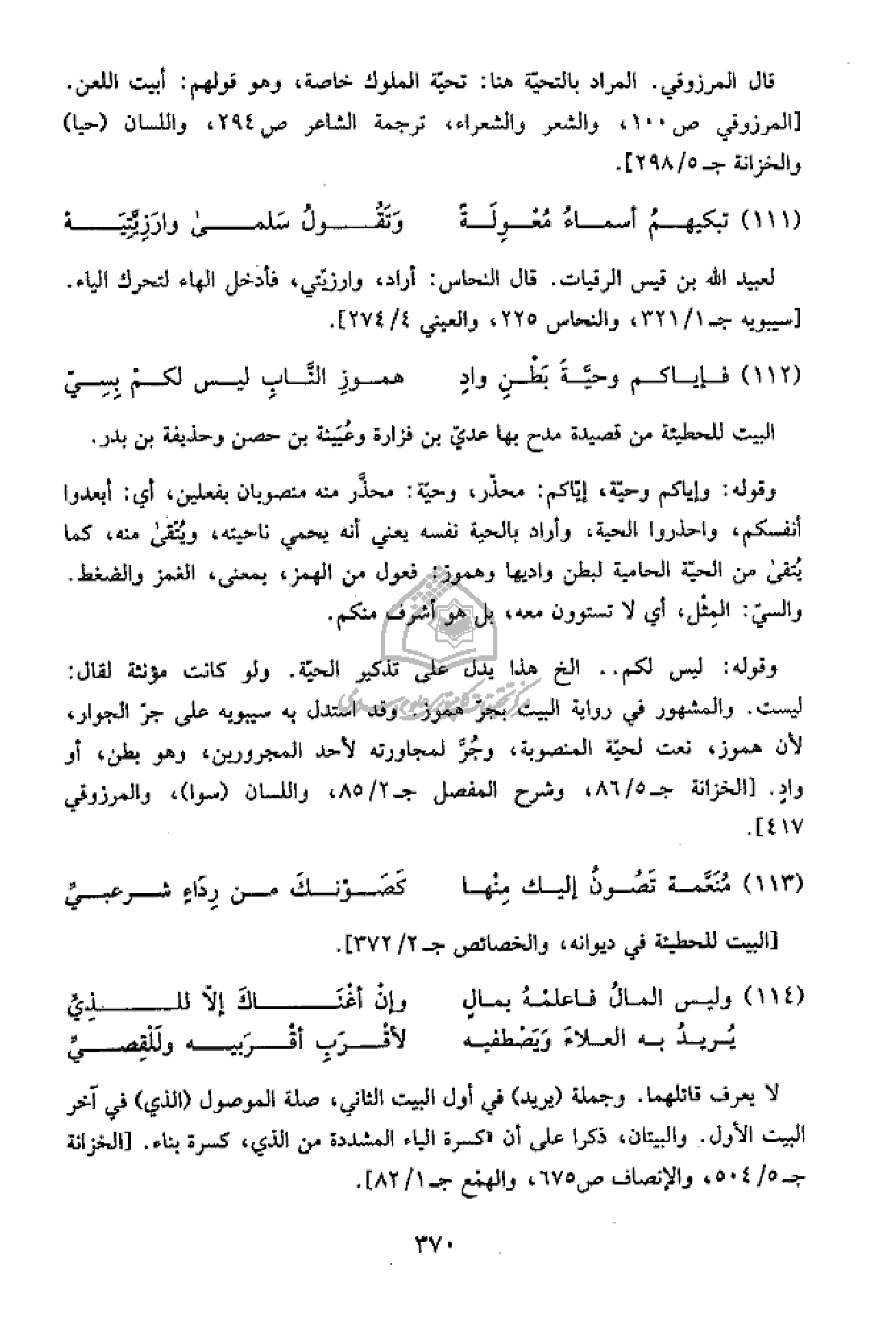 [المرزوقي ص 100، والشعر والشعراء، ترجمة الشاعر ص 294، واللسان (حيا) والخزانة ج 5/ 298].