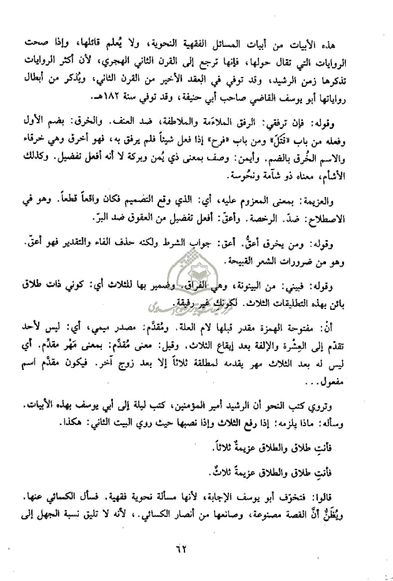 قالوا: فتخوّف أبو يوسف الإجابة، لأنها مسألة نحوية فقهية. فسأل الكسائي عنها.